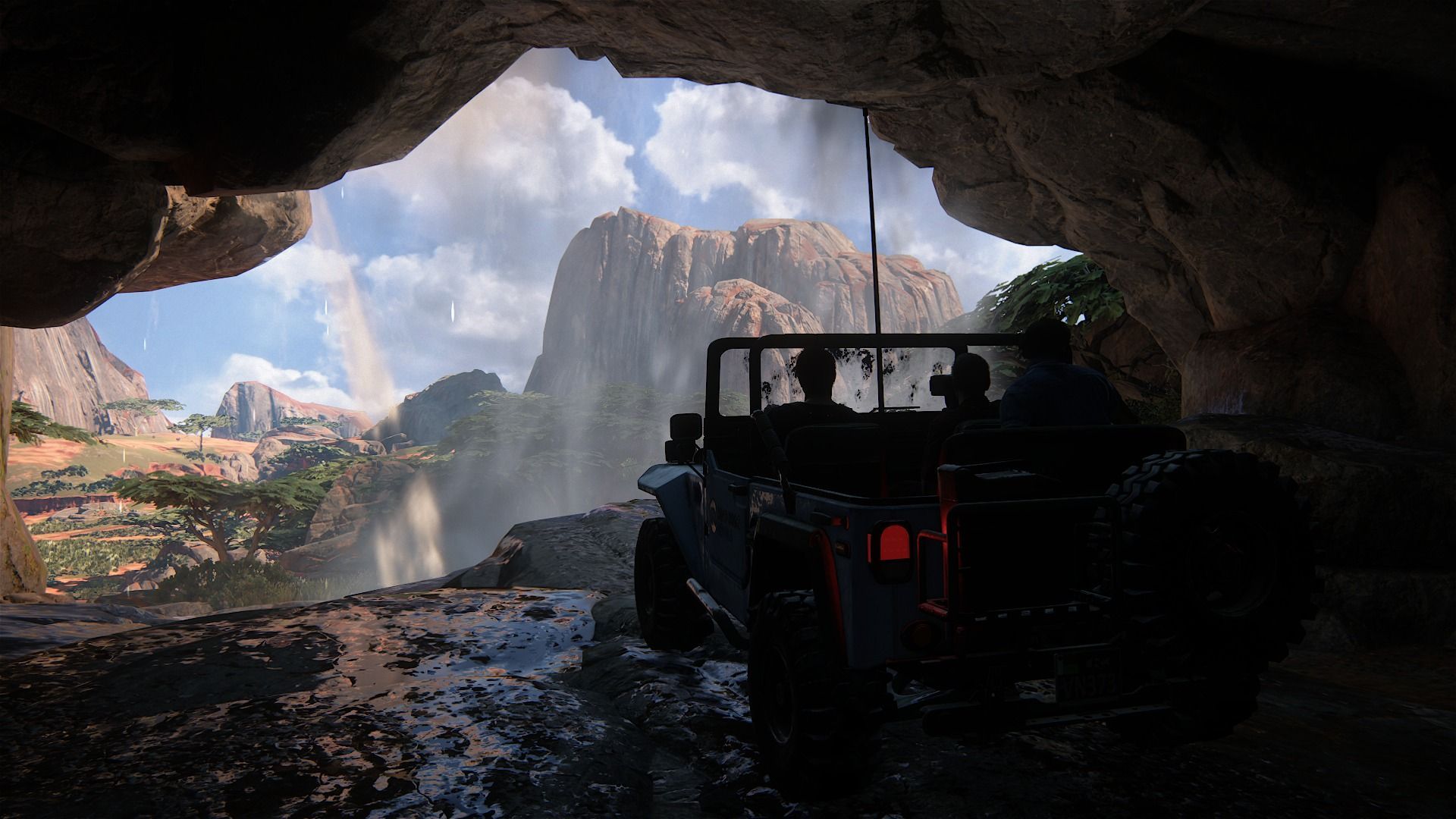 Las realistas animaciones del coche, cómo se mancha con las salpicaduras de polvo y el barro, la antena del jeep o una lata de combustible en la parte trasera que cuenta con sus propias físicas, cómo se comportan los personajes cuando vamos conduciendo, cambiando sus animaciones y la posición de las manos dependiendo de la velocidad, los baches o la inclinación, cómo reacciona la vegetación y cualquier elemento del entorno a nuestro paso, las diferentes animaciones de Nathan dependiendo del lado del vehículo por el que nos subamos… Asusta el nivel de perfeccionismo que se ha impuesto Naughty Dog con este juego, y nos deja embobados el nivel de detalle de los personajes en las cinemáticas, ahora perfectamente integradas en la acción, sin ninguna transición.