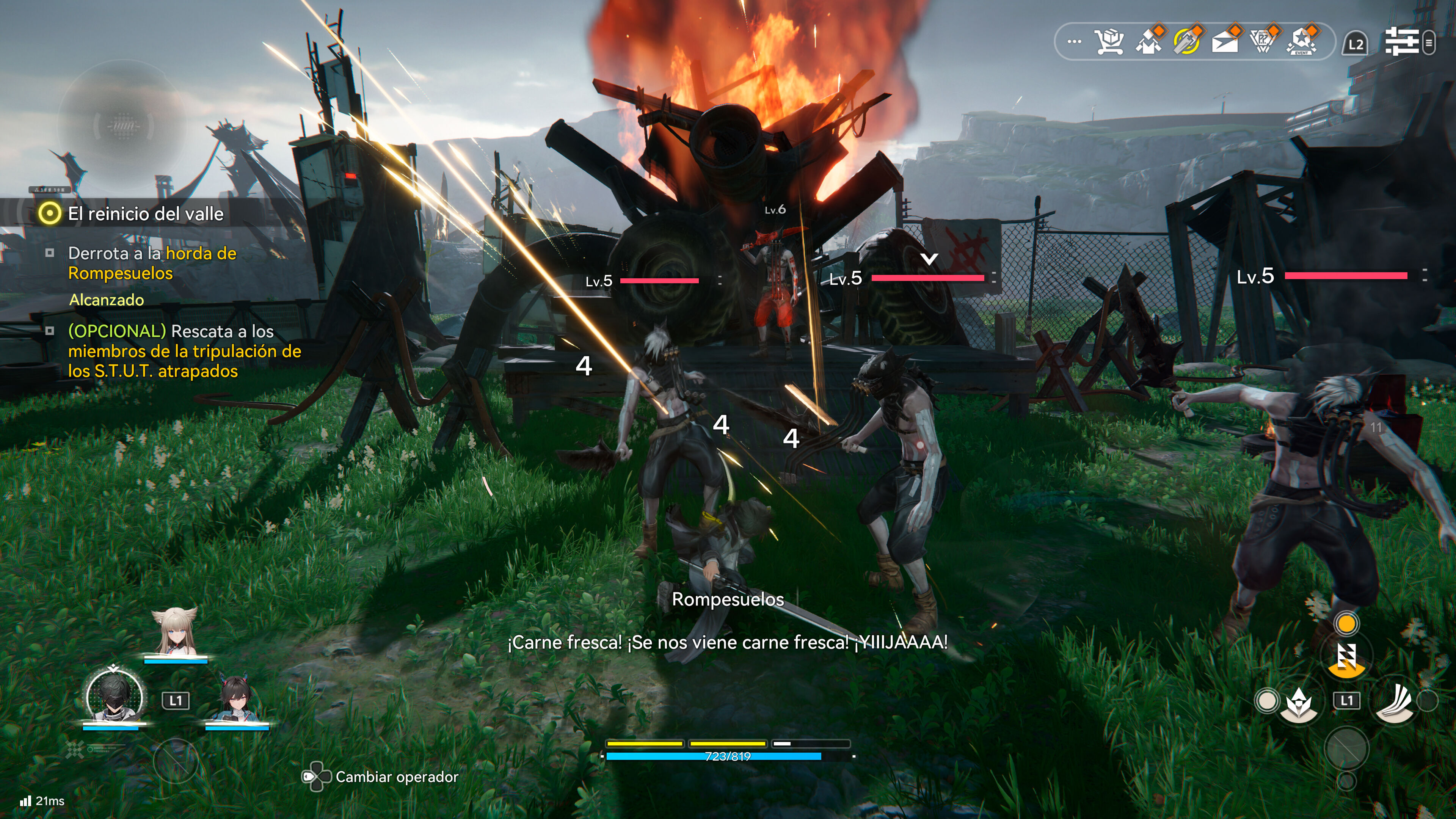 La auténtica gracia de las batallas es su sistema de combos, y es que en determinados momentos el grupo, de hasta cuatro personajes, puede alternarse para atacar a un mismo objetivo. Aquí es donde empezamos a ver la miga del juego: cada personaje es único, clasificado en una clase, y puedes elegir compañeros que completen tu estilo con ataques a distancia u otras técnicas; mientras controlas a uno, el resto de operadores actúan de manera automática.