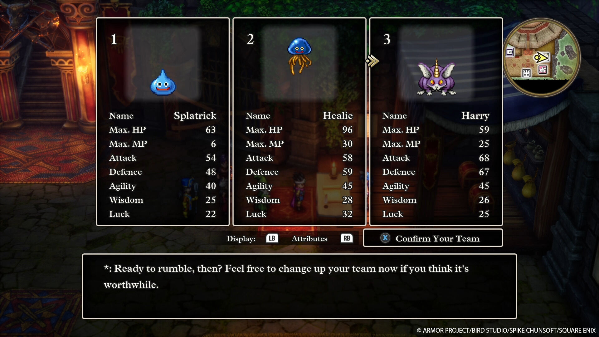 Su equipo se planteó "cómo añadir algo que de la misma sensación de sorpresa a los jugadores". "Obviamente, no puedes usar el giro de que [Dragon Quest] 3 es una precuela, porque eso ya lo sabe la gente [...] Así que teníamos que asegurarnos de tener algo nuevo e interesante", concluye sin dar más detalles que, sin duda, entrarían en el terreno de los spoilers.
