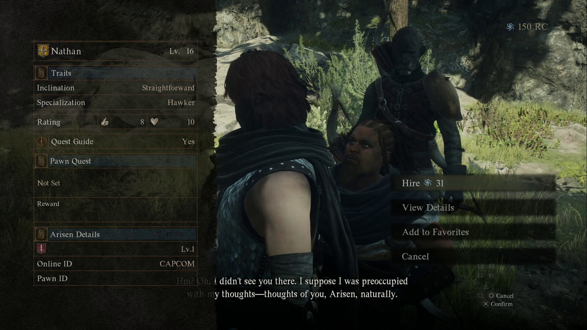 Pueden ser personajes que encontramos en las ciudades, en las aldeas y en los caminos, cada cual con su vocación (clase). O bien un Peón de otro jugador que reclutamos a través de internet: si en la partida del otro usuario ese ayudante ha completado una misión que nosotros aún no conocemos, o ha descubierto un cofre, o conoce cierto secreto, nos guiará hasta todo eso, lo que supone una especie de multijugador asimétrico muy interesante. Además, se podrán votar los peones más interesantes para que los vean más aventureros, lo que sin duda creará una comunidad con interés por desarrollar compañeros útiles.