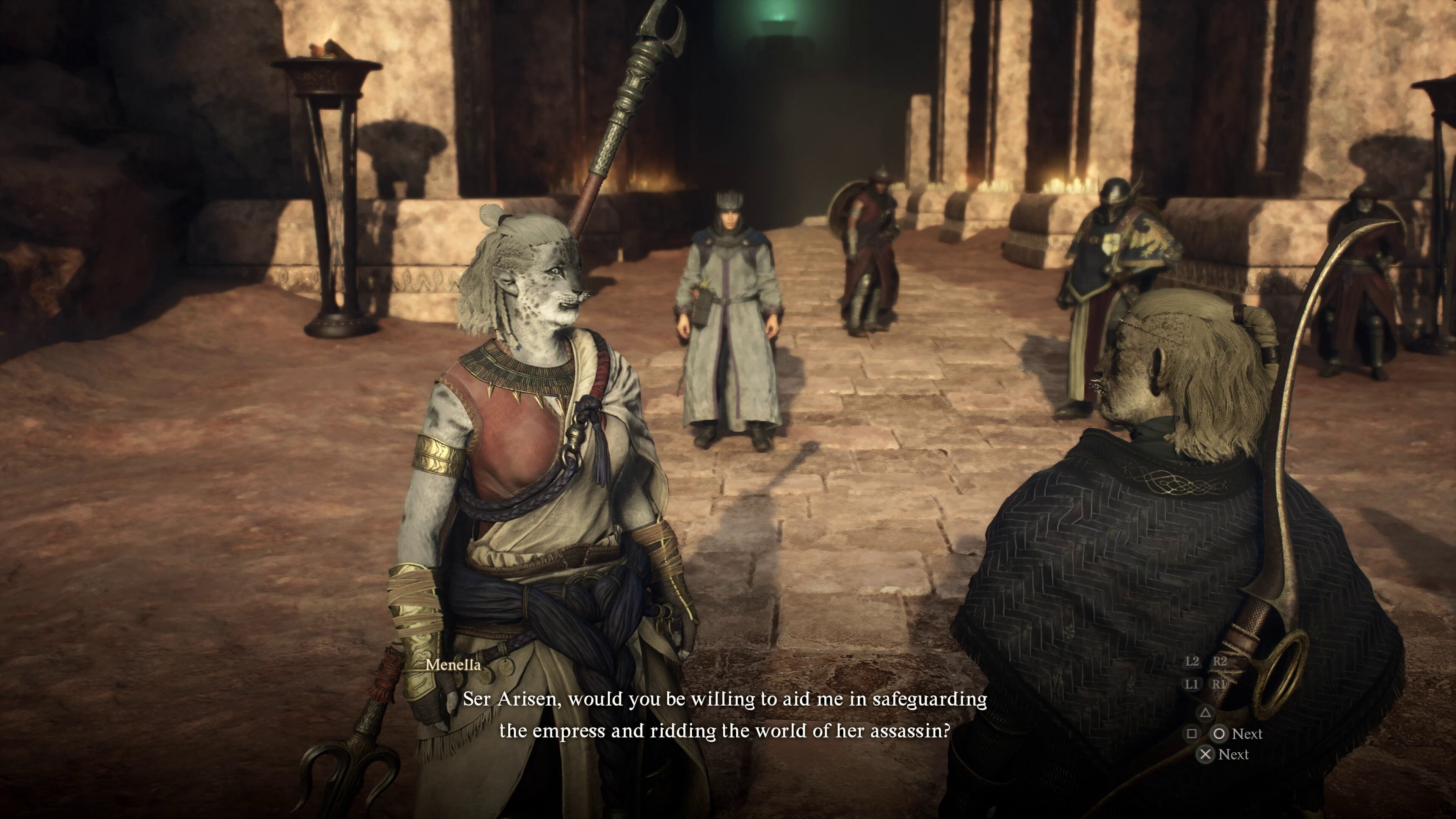 Nuestra torpeza nos llevó a descubrir una función sorprendente. En la siguiente sección de la prueba, ya en la árida región de los Beastren, y después de invitar a nuestros peones a unas rondas de hidromiel y tras meternos en una pelea de bar, nos contrataron para una misión: alguien había intentado matar a una sacerdotisa, e iba a volver a hacerlo. Teníamos que esperar a la siguiente misa y en ella, revisar el aspecto de todos los feligreses para encontrar a quien coincidiera con la descripción. No lo conseguimos. La mujer, un pilar para la comunidad, murió. "A otra cosa, mariposa", pensamos, y seguimos explorando la ciudad. Encontramos el osario, donde descansan los restos de los personajes muertos importantes de la aventura. Pudimos pedirle a la muchacha que gestiona el lugar que marcara con una vela la tumba de la sacerdotisa, y con un recurso consumible que teníamos, y con toda nuestra incredulidad de que esto fuera posible, la pudimos revivir. La misión volvió a activarse, el personaje era consciente de lo que había ocurrido, y ahora teníamos una segunda oportunidad para atrapar al asesino.