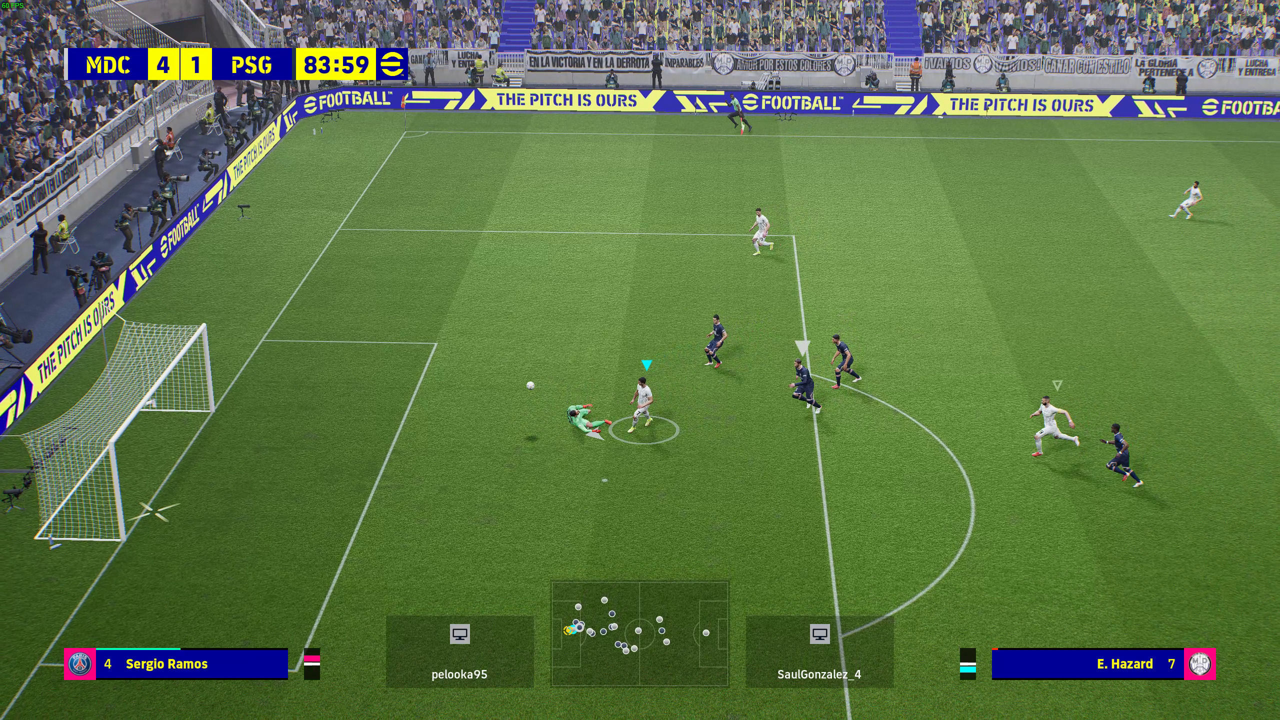 Sin embargo, nuestra sorpresa empezó con una suerte de partido/tutorial en el que controlábamos a Argentina en un encuentro contra Portugal, dos equipos que a priori no iban a estar, sorpresa que aumentó cuando, al jugar por primera vez al modo online a través de un evento (empezamos probando directamente el multijugador) vimos cómo podíamos escoger cualquiera de los principales clubes de Europa con licencia o sin ella (en el caso del que os escribe el Madrid Chamartín).