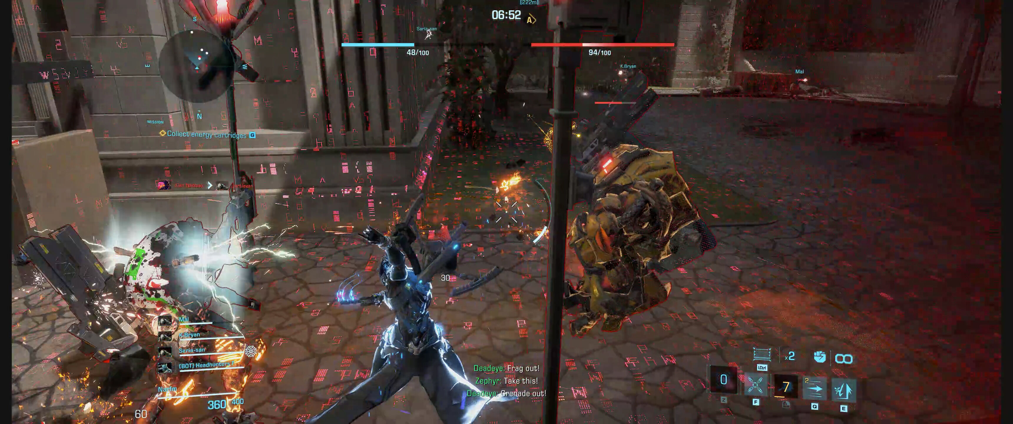 No pasa mucho hasta que Leviathan se vuelve majareta y sumerge a los exosoldados en pruebas de aptitud que se repiten sin cesar con el objetivo de desarrollar técnicas de batalla imbatibles contra las mareas de cientos de miles de saurópsidos que asolan las ciudades. Es interesante el método de narrar este argumento, a través de monólogos de la IA antes de entrar a la partida y con cambios en la misma, además del uso de escenas cinematográficas de vez en cuando. En la beta no había mucho de este contenido, por lo que está por ver el ritmo al que evoluciona la historia, o si se apoyará también en eventos o en temporadas, como es habitual en los juegos online.