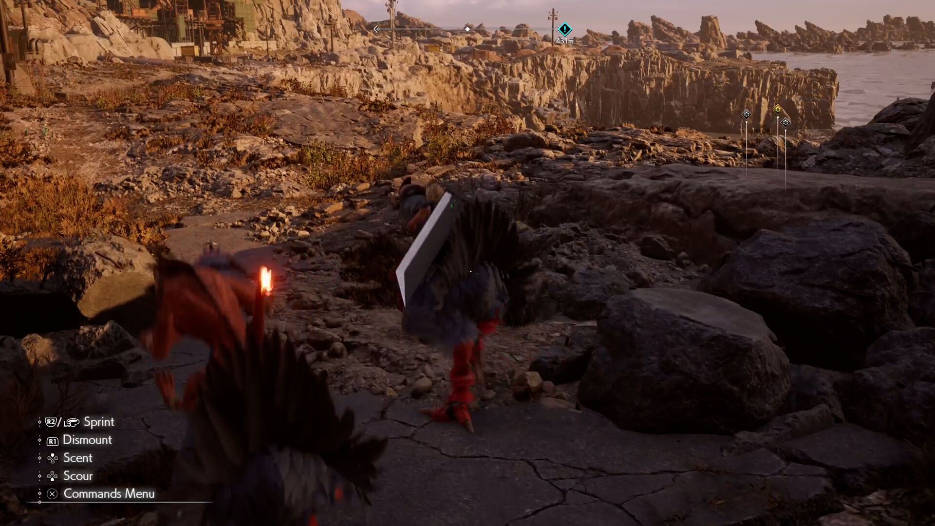 Sí, nos hizo mucha ilusión recorrer el lugar cabalgando un chocobo (por cierto, Red XIII sobre una de estas criaturas es bastante gracioso), personalizarlos estéticamente en una granja y utilizar su capacidad de rastreo para descubrir objetos y materiales por el mundo abierto. Se estructura en puntos de viaje rápido, paradas de chocobo que hay que encontrar para activar, a lo que nos ayuda un adorable chocobito que, por supuesto, podemos acariciar. Pero no vimos mucho que hacer en este lugar. Nos podíamos salir del camino para dar con algún cofre oculto, recopilar hierbas para utilizarlas en un nuevo sistema de fabricación, y participar en retos de combate contrarreloj que podemos completar cumpliendo ciertos desafíos para aumentar las recompensas, algo que puede dar mucho de sí de cara al contenido final de juego.