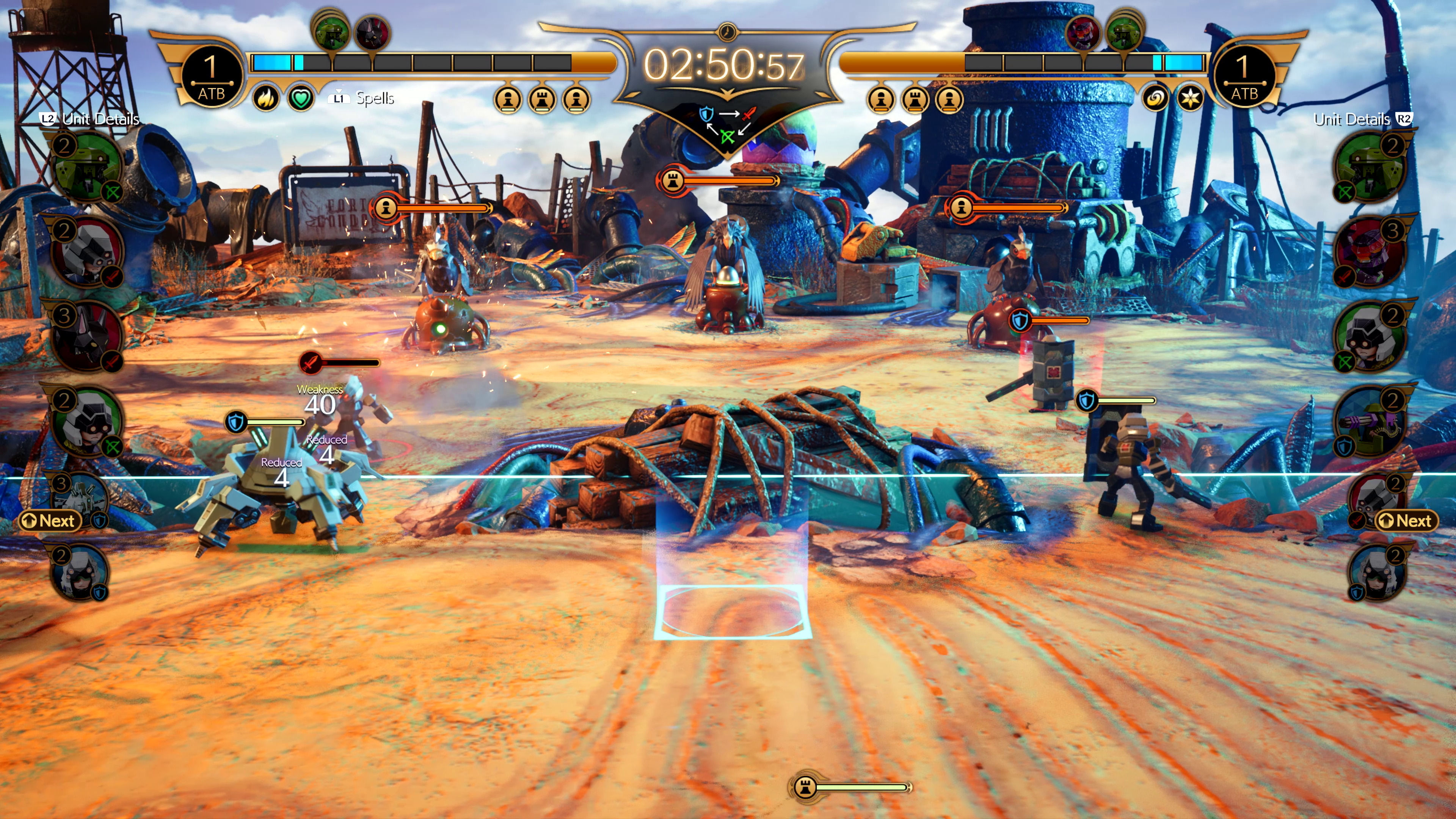 Como era de esperar, cada unidad es efectiva y débil contra las de otros tipos concretos, un sistema al más puro Piedra, Papel, Tijeras, por lo que deberemos escoger con mucho cuidado qué tipo de soldado queremos llamar al combate. Obviamente, para invocar tendremos que gastar los segmentos que acumulemos de la barra BTC que acumulemos con el paso del tiempo, aunque también existe la posibilidad de conjurar poderosos hechizos para volver las tornas a nuestro favor. Eso sí, cada magia puede ser utilizada una única vez por partida, así que decidir bien el momento para utilizarlas será fundamental.