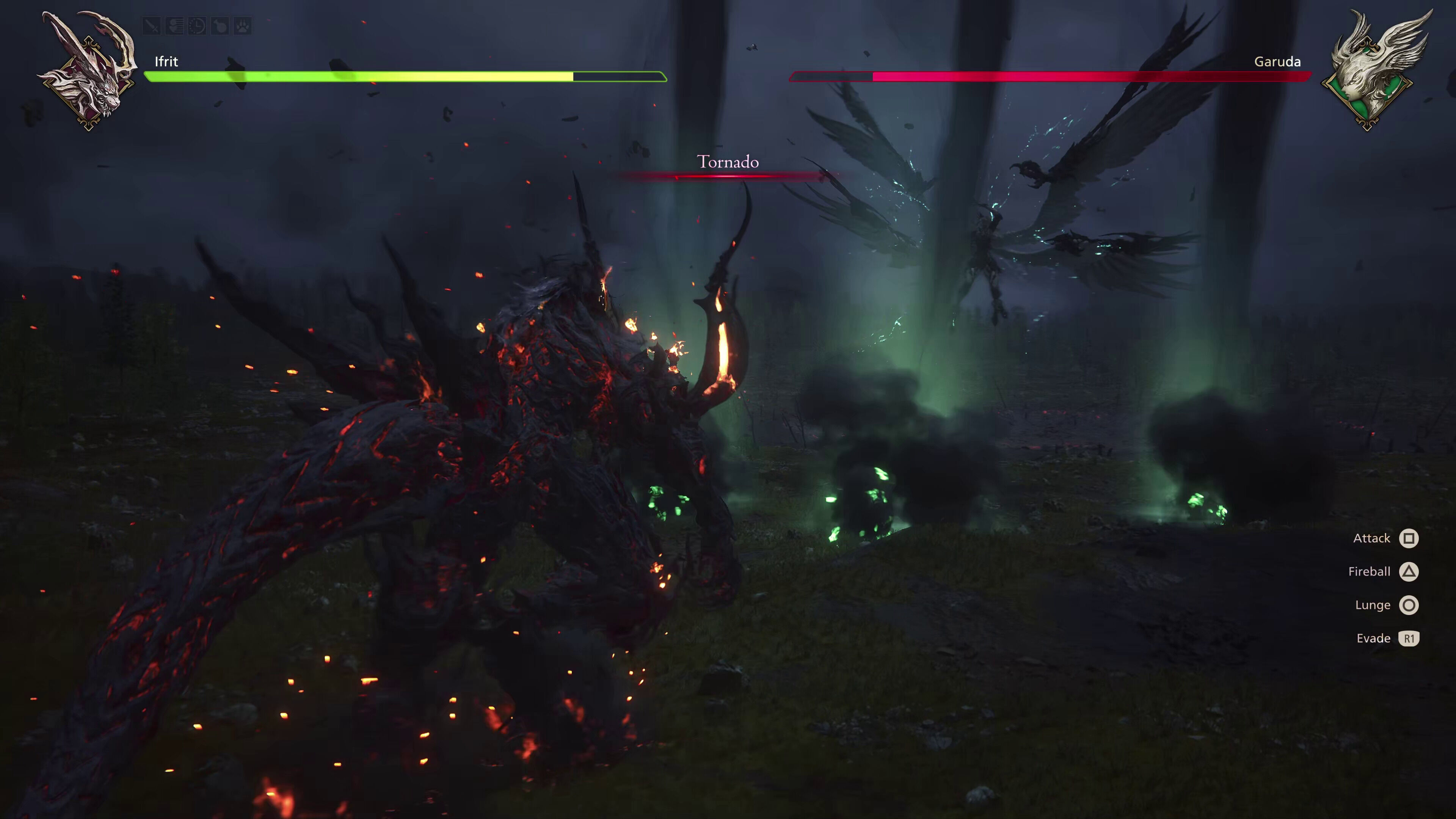 Nosotros hemos podido jugar una batalla en la que teníamos que controlar a Ifrit para derrotar a Garuda. En ella, nuestros controles se limitaban a movernos, realizar un combo de ataques cuerpo a cuerpo, disparar un hechizo a distancia, embestir y esquivar, simplificando así muchísimo nuestras posibilidades de acción.