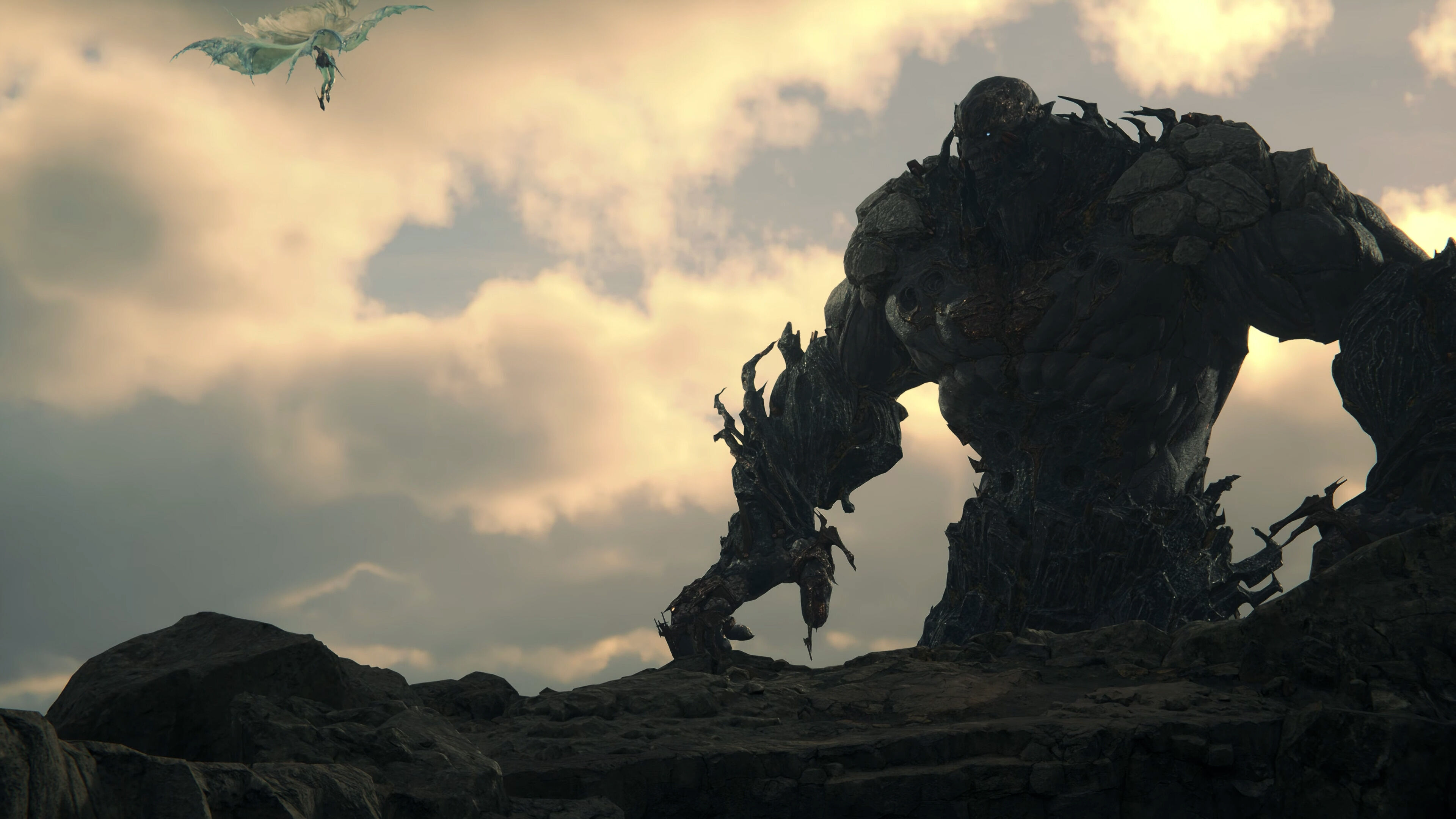 Porque, por esta presumible linealidad, hemos recorrido castillos densos desbordantes de vida, pantanos inquietantes con criaturas que nos asaltaban a cada paso y con algunos caminos alternativos para esconder objetos consumibles, y cordilleras repletas de desniveles desde las que se divisan a lo lejos batallas multitudinarias mientras corremos por nuestra vida huyendo de los peñascos que sobrevuelan por el enfrentamiento entre Titán y Shiva. Eso sí, el final de la prueba daba la sensación de que a partir de ese momento el jugador tendría más libertad, pues llegamos a una guarida con su forja, sus tiendas, un puñado de misiones secundarias de recadero con cierto toque humorístico, y un historiador que nos da todos los detalles que necesitamos del mundo de Valisthea.