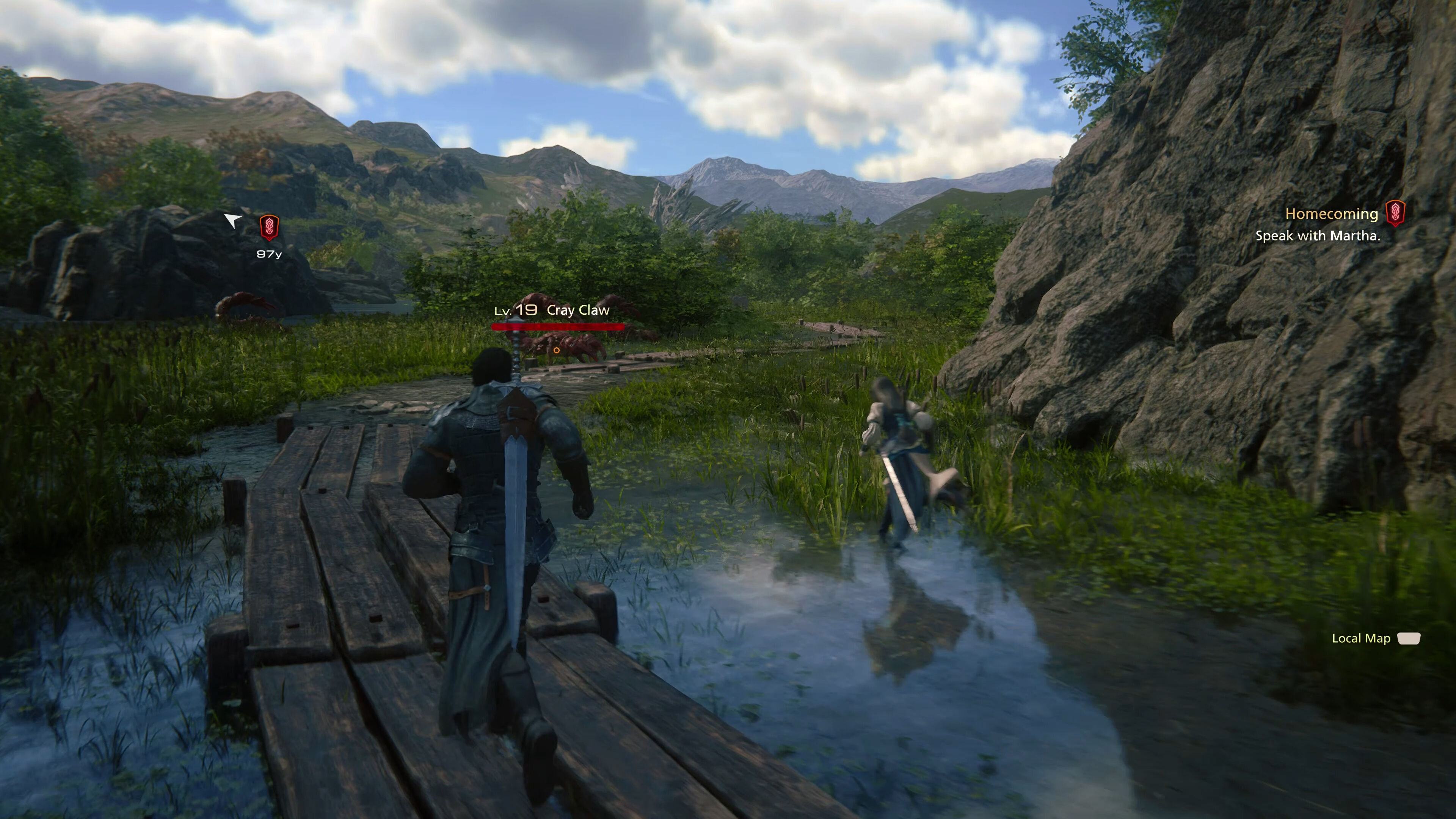 De manera separada a estas primeras cuatro horas también tuvimos la oportunidad de explorar durante media hora una sección de mundo abierto, y creemos que es bastante significativo que nos sobrara tiempo. Nos alegró ver que el juego no tendrá siempre el tono sombrío que vimos hasta el momento, pues estábamos ante una bonita pradera con lagos, vida salvaje y cabañas aquí y allá. Pero es uno de esos mundos abiertos rígidos, que te obligan a ir por los caminos designados y que impide que metas medio pie en el agua. Tampoco había mucho que hacer más que enfrentarnos a ladrones y monstruos (donde pudimos comprobar que tan solo con introducir un puñado de magias de otro eikon el combate es todavía más profundo e interesante) y completar una misión de recadero muy simple donde lo importante no era la recompensa, sino aprender pequeños detalles del universo de Final Fantasy XVI.