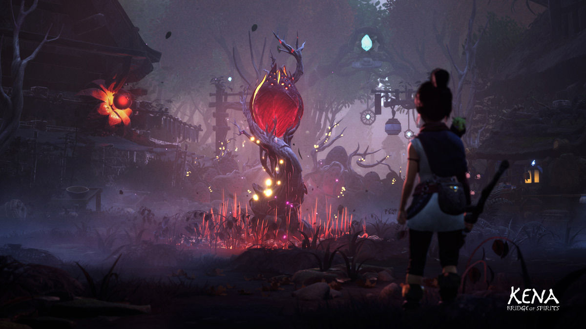 Kena: Bridge of Spirits nos pone en la piel de Kena, una joven guía espiritual que viaja a través de un poblado abandonado en busca del santuario sagrado en la montaña. Ella luchará por descubrir los secretos de esta comunidad olvidada escondida en un bosque cubierto de maleza donde los espíritus errantes están atrapados. Las máscaras de madera jugarán un papel importante en la trama y hemos visto algunos personajes que nos ayudarán en la aventura, como el anciano que hace de narrador o Beni y Saiya, dos niños de pelo verde que utilizan sus tirachinas. La ambientación del juego está marcada de manera notable por la cultura del sudeste asiático, especialmente la de países como Japón o Bali, cuya relación es mucho más fuerte debido a los elementos que han representado.
