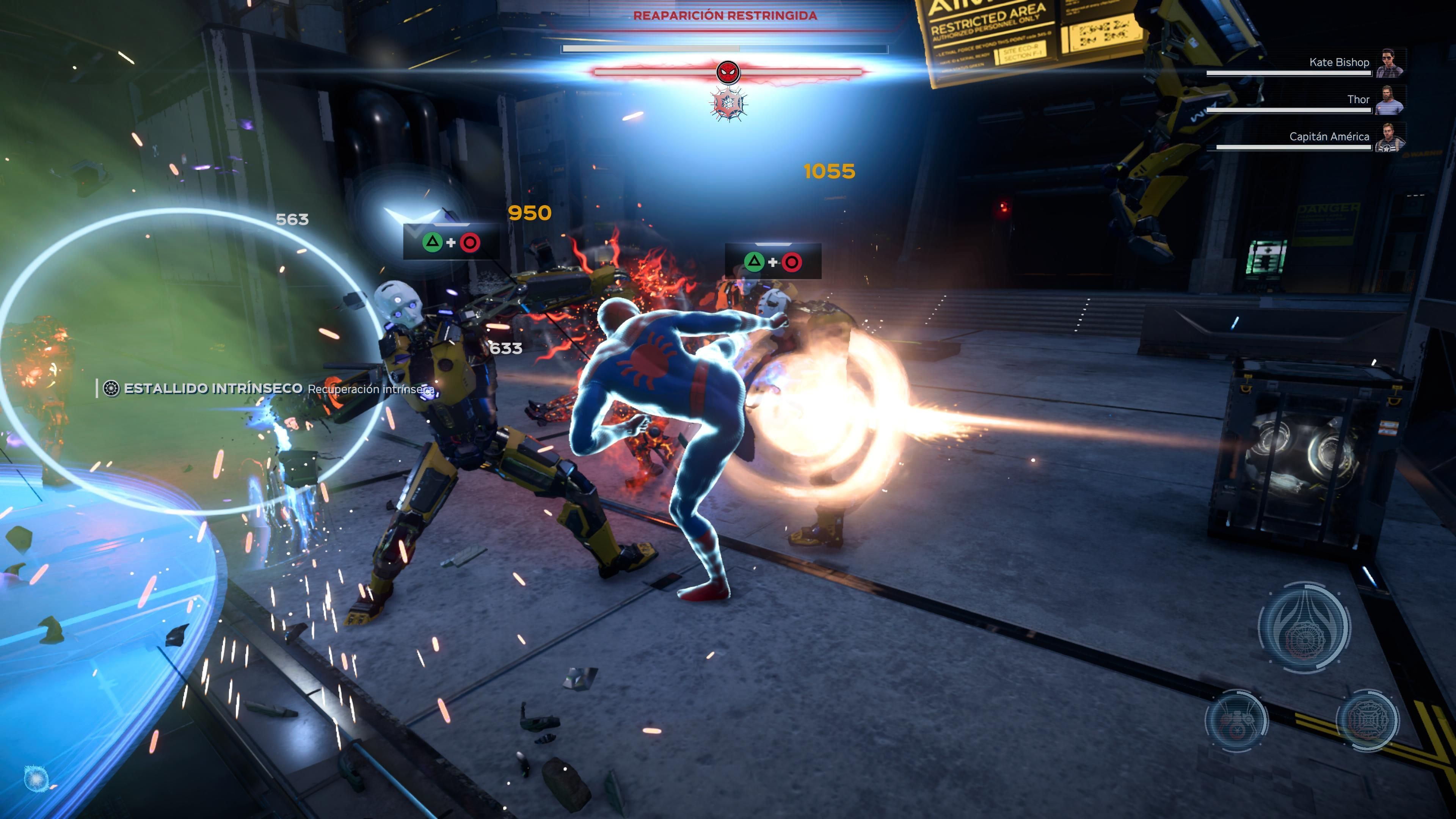 En combate, el Spider-Man de Avengers no dispone de la misma rapidez que el de Insomniac y, a veces, cuesta que responda correctamente a las animaciones de esquiva. No puede realizar ni la mitad de contraataques y es inevitable que a veces el personaje se sienta como pesado, cuando no debería ser así ni mucho menos. Las piruetas, volteretas y demás, quedan para las animaciones en las que, presionando triángulo más círculo, Spider-Man hace remates tremendos a los enemigos haciendo que besen el suelo. No es que el líneas generales sea un mal personaje de Avengers, porque de hecho es todo lo contrario, pero no transmite lo que debería y en el apartado jugable da la sensación de que pertenece incluso a una generación pasada, sin un diseño de pelea pulido del todo o no adaptado como debería a un personaje tan veloz y acróbata como este. Siempre teniendo en cuenta que partimos de la base de tener los Spider-Man de Insomniac muy metidos en la cabeza.