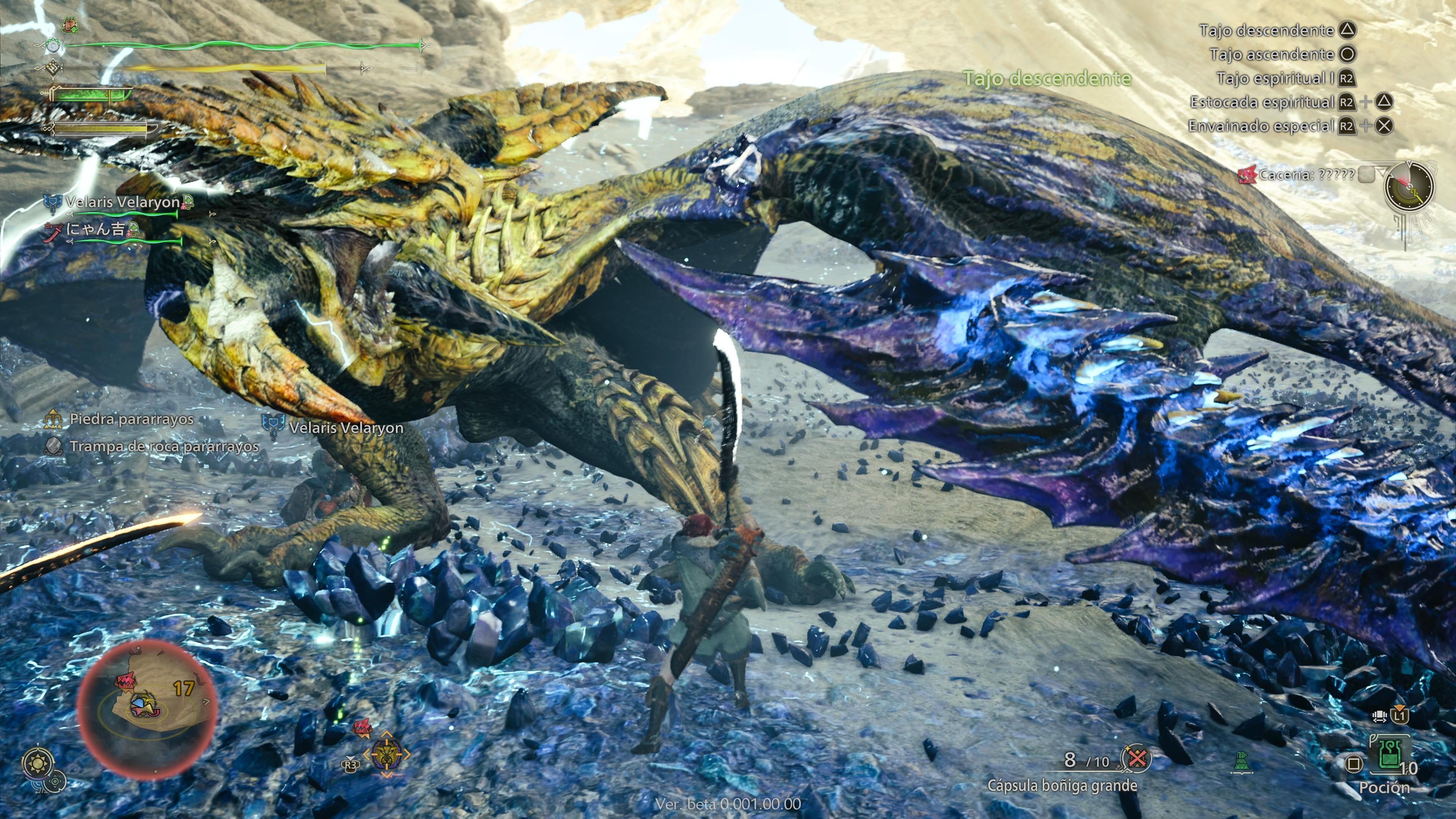 Hablando de combates, conviene destacar que las armas tienen algunos movimientos nuevos y que ahora la acción es más ágil y fluida, algo en lo que tienen mucho que decir las animaciones tanto de los monstruos como de nuestro personaje. El salto respecto a Monster Hunter World en este sentido es gigantesco y se nota una barbaridad a los mandos mientras encadenamos golpes, esquivamos, bloqueamos y vemos a las criaturas moverse, logrando que el intercambio de ataques resulte mucho más placentero y dinámico.
