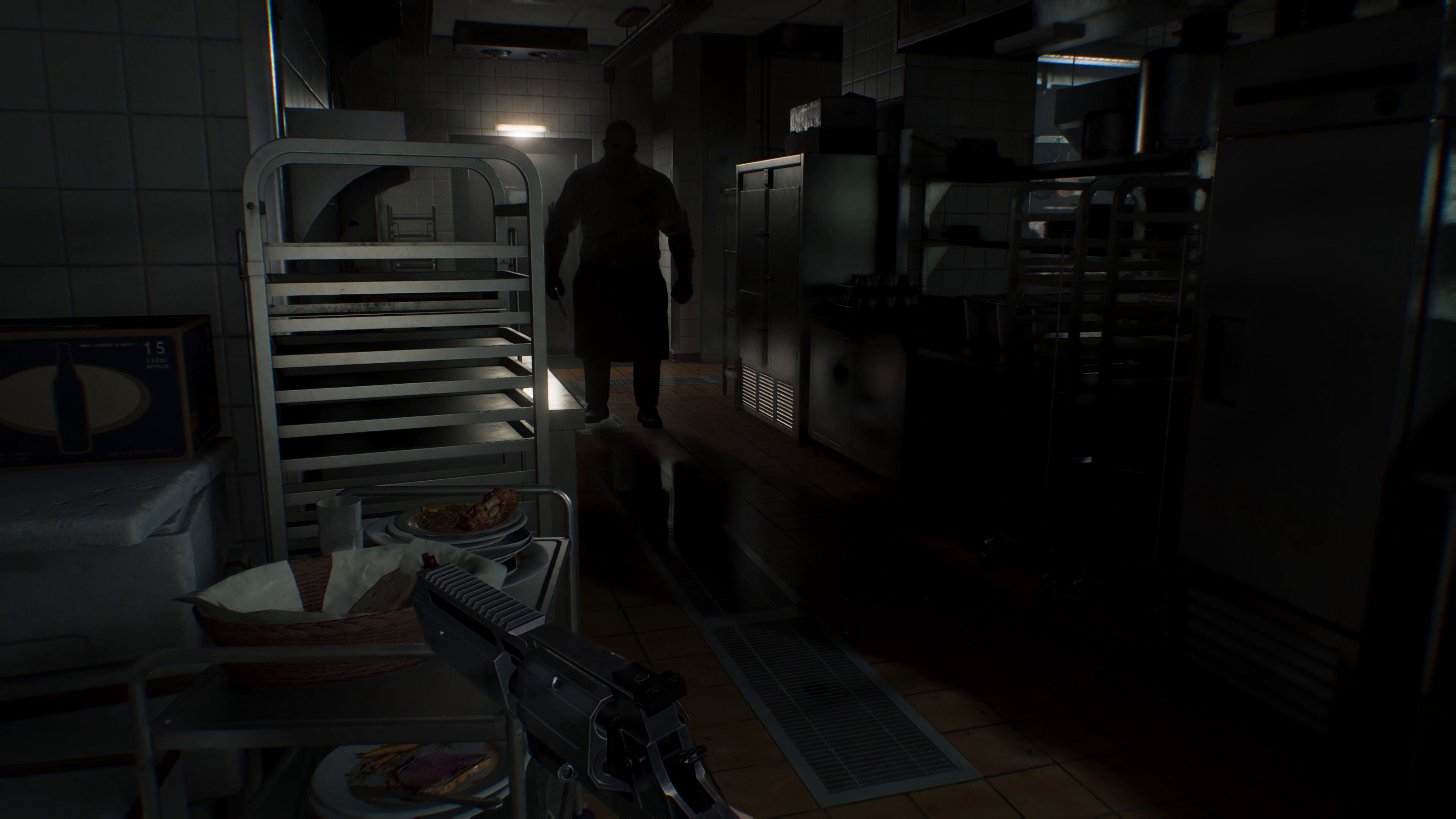 La iluminación hacía el resto, con pasillos levemente iluminados y escenas terroríficas donde veíamos que cada zombi hacía algo distinto. Como antiguos trabajadores del lugar, podías observar a una limpiadora sacando brillo a un cristal de un baño, a un operario encendiendo y apagando las luces sin cesar, y a un voluminoso cocinero que daba auténtico pavor acercarte mínimamente a él. Con Grace te sientes pequeño ante la situación, porque las balas son limitadas y al principio no tienes ni siquiera un cuchillo con que defenderte.