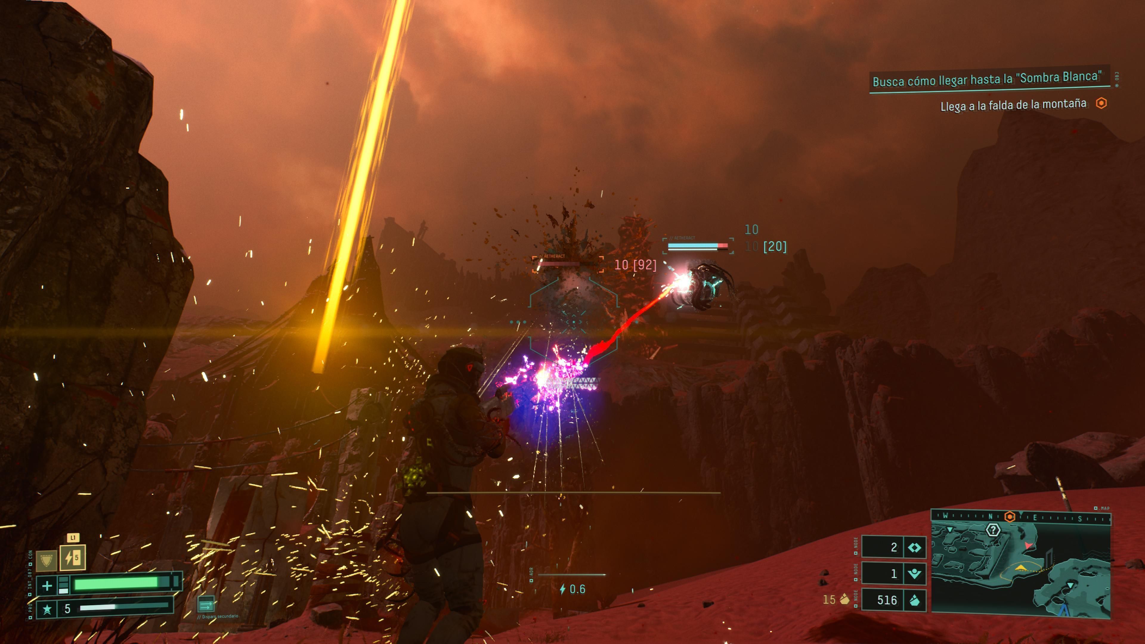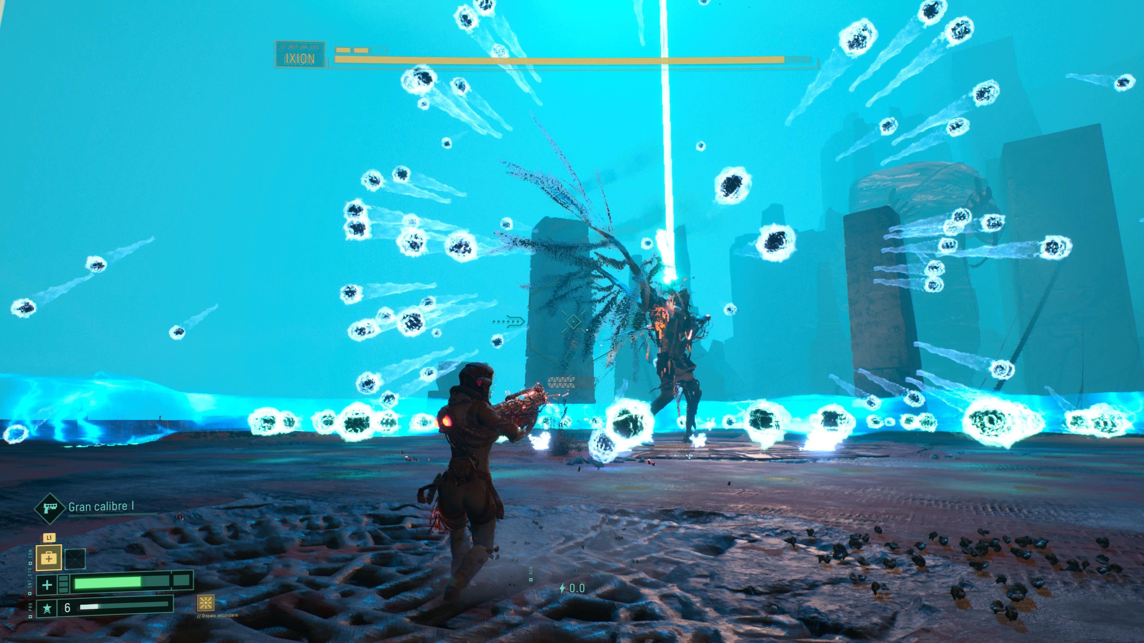 Y sí, podéis dar por seguro que os van a acosar con infinidad de proyectiles y gigantescos rayos láser que inundan toda la pantalla, por lo que moverse, saltar y usar con cabeza el esprín con el que contamos para esquivar será fundamental si queremos sobrevivir a este infierno de balas tan particular que nos ha recordado con contundencia por qué la acción arcade siempre ha sido el fuerte de Housemarque. Es más, los enfrentamientos no paran de mejorar y evolucionar a medida que conseguimos nuevas habilidades y herramientas permanentes, muchas de las cuales tienen usos tanto para explorar como para luchar, por lo que no podemos esperar a seguir jugando para descubrir hasta dónde serán capaces de llegar.
