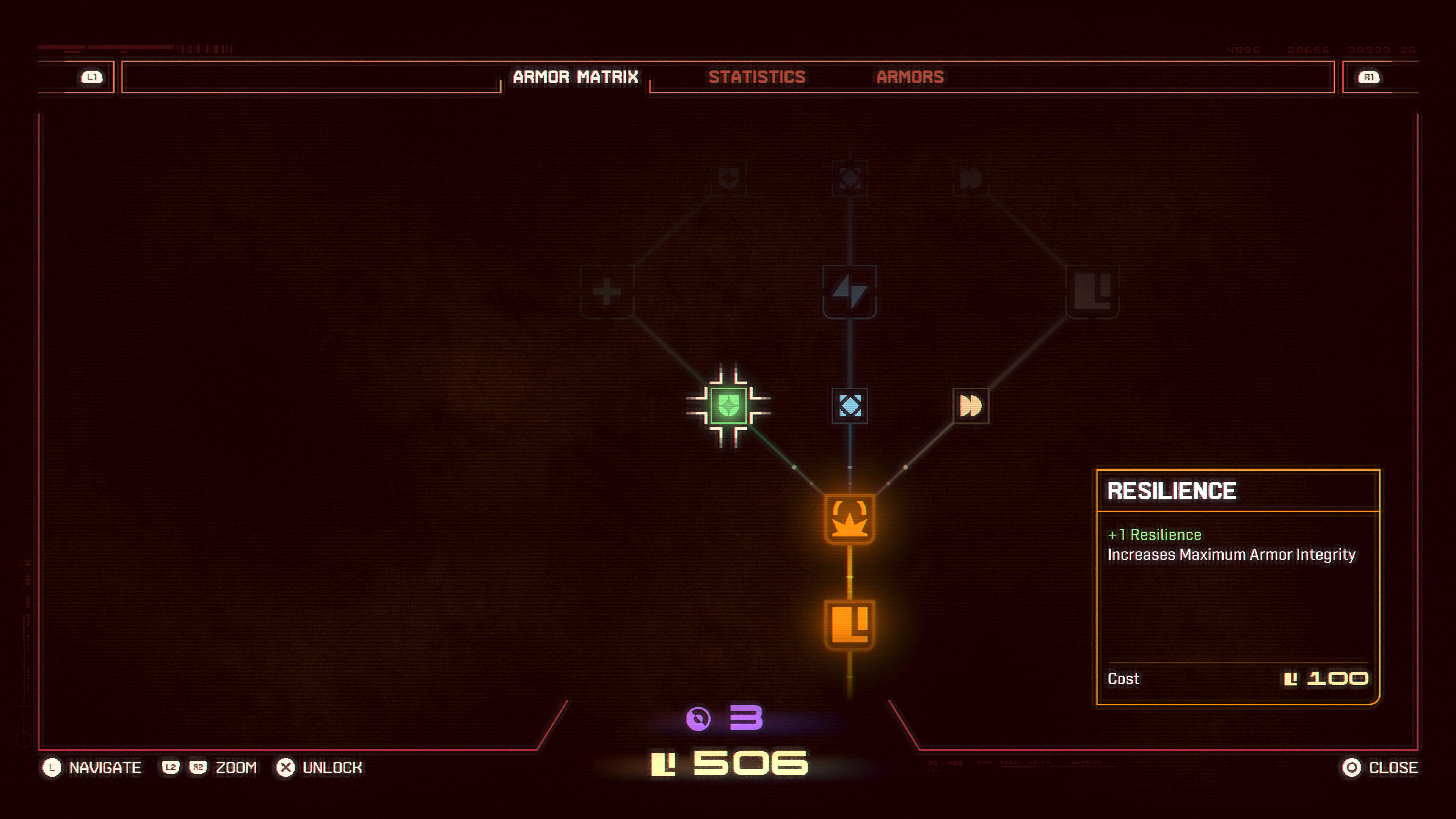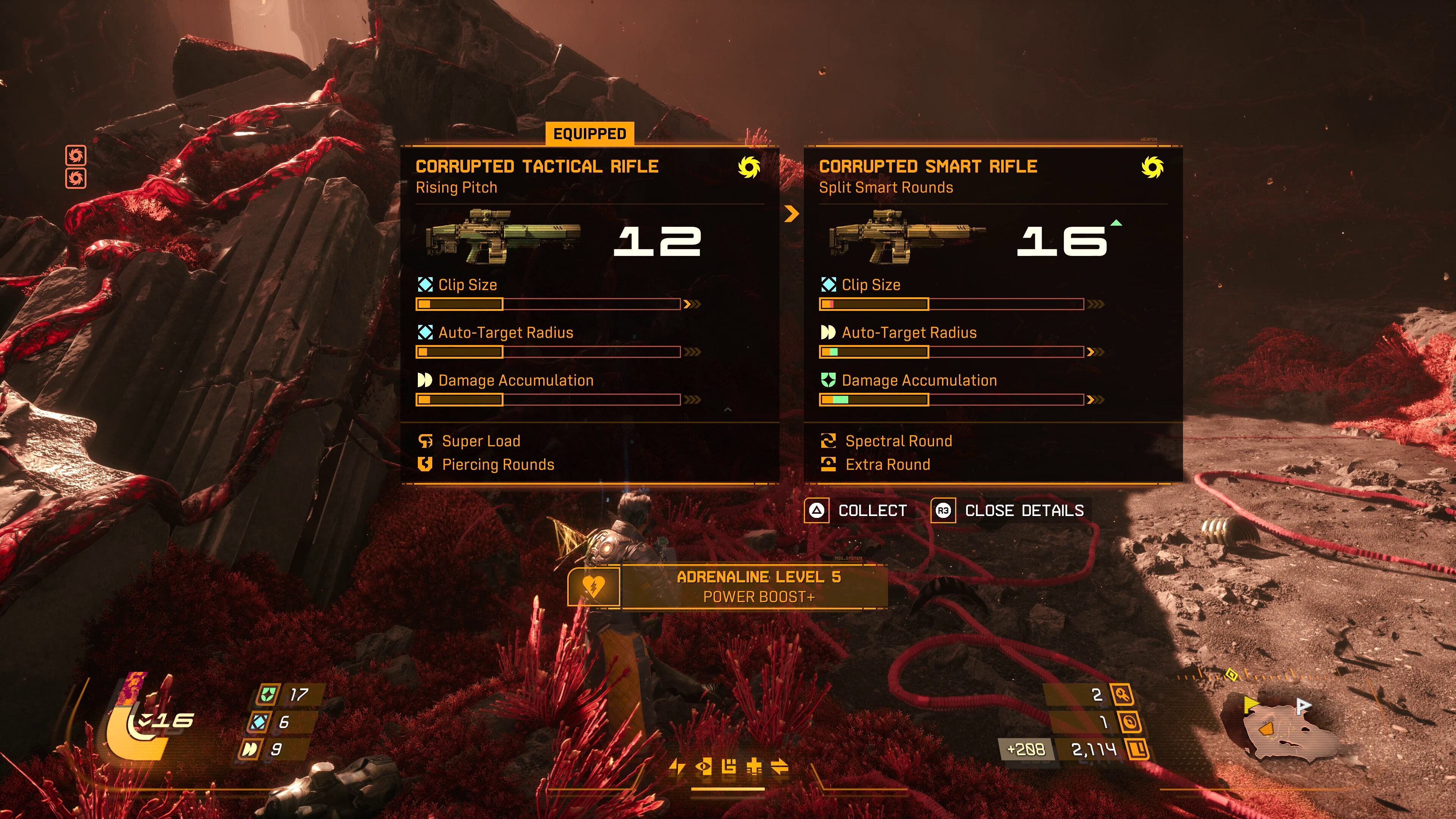 El otro gran pilar del juego está en su sistema de progresión. A medida que exploramos y combatimos vamos obteniendo fragmentos de Lunecita. Una vez perdamos la vida y se nos despoje de todo nuestro equipo, se nos devuelve a la base y mediante una especie de ordenador conocido como Primario tenemos la oportunidad de mejorar aspectos de forma permanente, como la integridad de la armadura, la cantidad de tiempo que podemos usar el escudo, la energía máxima o incluso activar la "segunda oportunidad" (básicamente resucitar al instante de perder toda la vida).