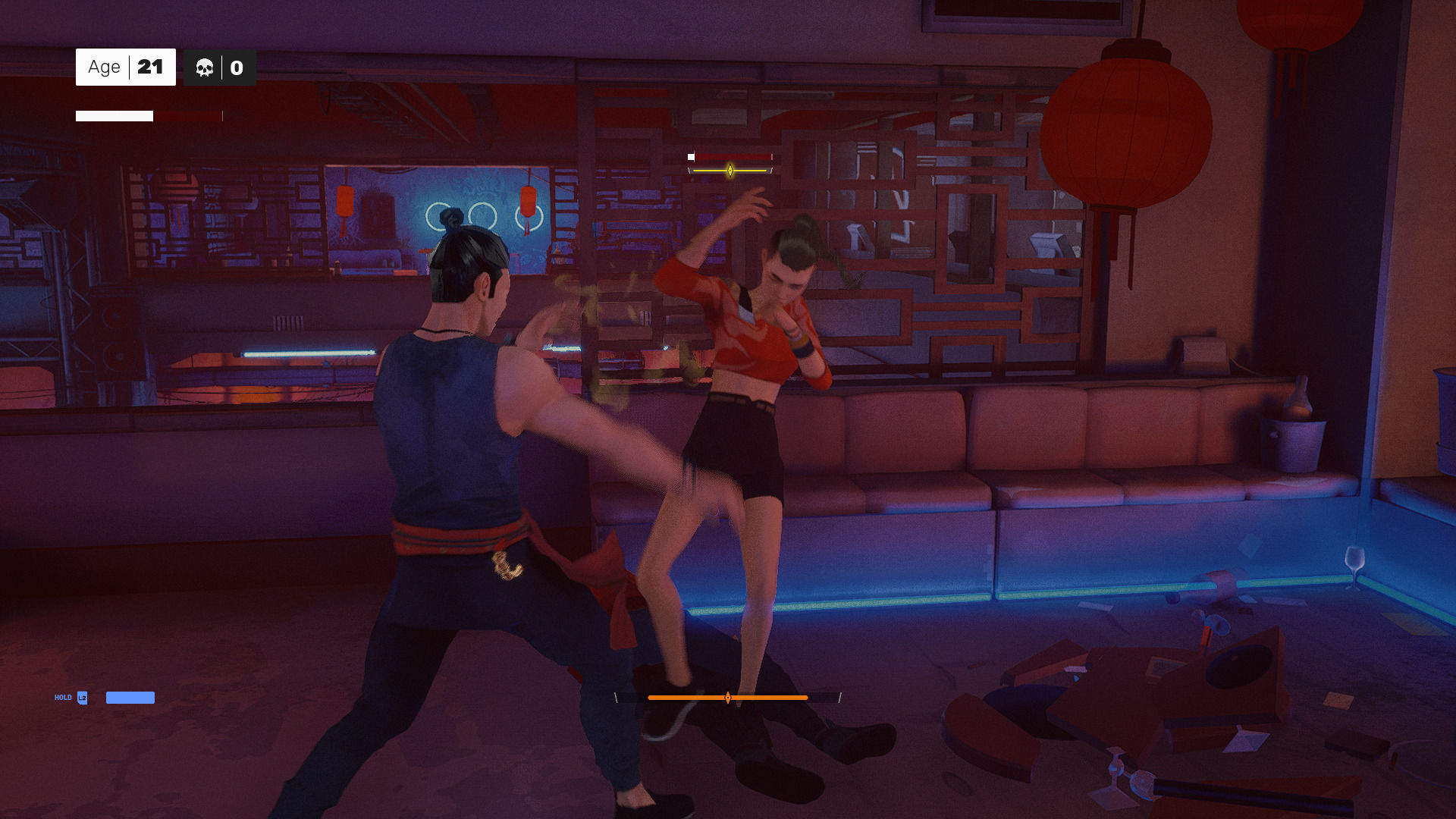 En Sloclap son muy conscientes de esto ya que se trata de algo completamente intencionado, pues quieren que el jugador aprenda a jugar de verdad y que cada victoria transmita la sensación de ser todo un logro. Por ello, han ideado un original sistema que hace que cada vez que caigamos derrotados nos podamos volver a levantar del suelo a cambio de envejecer uno o varios años, algo que depende de un medidor cuyo funcionamiento no hemos terminado de entender todavía (todo apunta a que si nos eliminan muchas veces seguidas envejecemos más años de golpe).