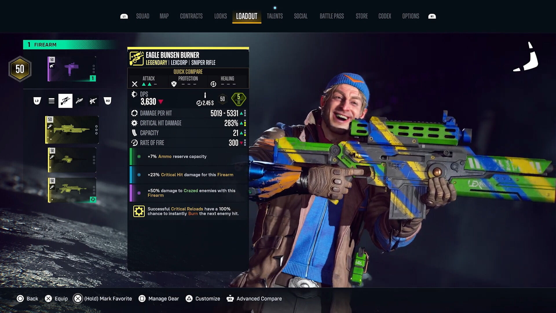 La personalización de cada uno de los villanos con nuevos elementos cosméticos, armas y habilidades es uno de los puntos más importantes del videojuego. El Pingüino actúa como un comerciante y fabricante al que podemos acudir para mejorar y comprar armas, que se dividen en seis categorías (fusiles de asalto, subfusiles, rifles de francotirador, escopetas, ametralladoras y pistolas), aunque también hay otras singulares como las de LexCorp, AmerTek o DPGC, mientras que Hack ayuda al escuadrón a mejorar sus nanobombas y el Juguetero a potenciar sus equipos. Dotar a nuestros personajes de equipamiento más poderoso permite aumentar su nivel de poder para que estos sean más eficaces en las luchas y puedan enfrentarse a misiones más complicadas.