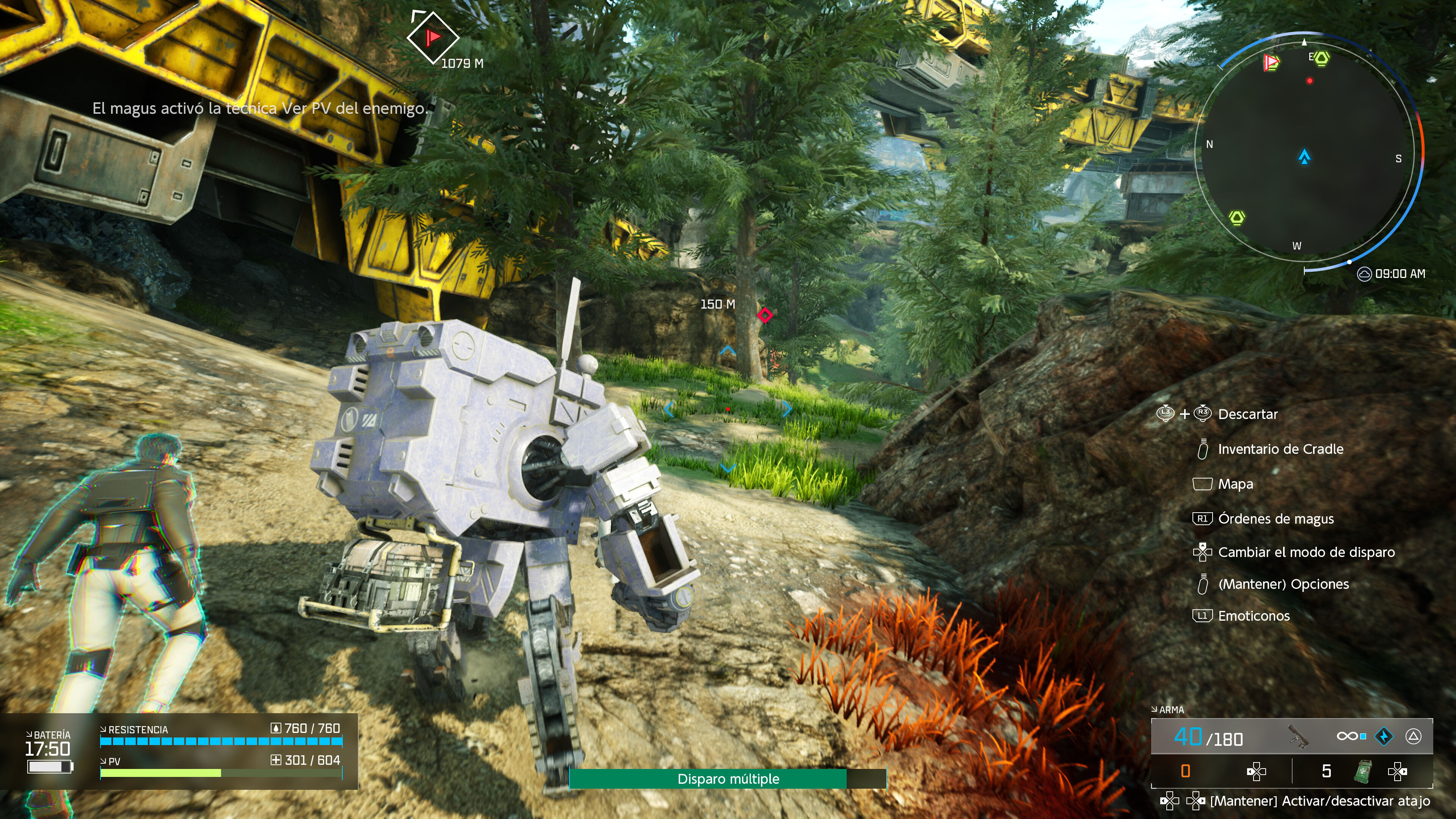 El problema, claro, es que este mundo es muy hostil. Los enemigos controlados por IA estarán protegiendo los puntos más interesantes, los grupos numerosos entorpecen nuestro avance, y el Cradlecoffin es potente, pero limitado: hay dos tipos de armas/munición, la de fuego que es la más letal, provoca retroceso y sus proyectiles describen una parábola, y las de energía, rayos en línea recta. Contra los exterminadores siempre puedes jugar con el terreno, atacar con la seguridad de la distancia, dominar la situación o huir si nos conviene, pero el combate contra otros jugadores es más agresivo, arriesgado e imprevisible.