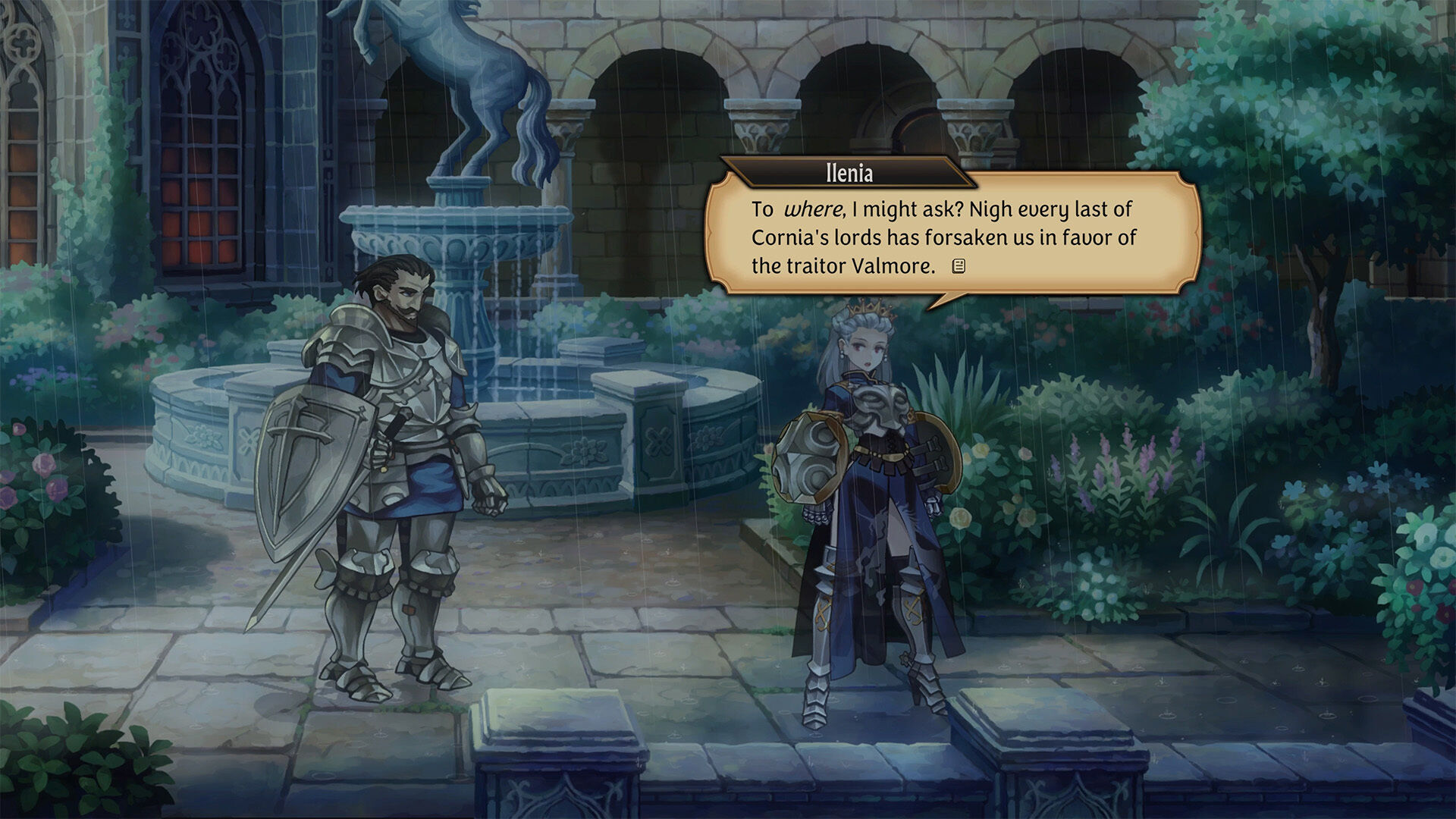 Así pues, viajaremos a un mundo de fantasía medieval para ayudar a un príncipe exiliado y a un grupo de héroes a recuperar su reino de los traidores que han usurpado el trono, una premisa argumental que, como veis, no es precisamente original, teniendo aquí el que es, de momento, el punto que menos nos ha convencido durante esta primera toma de contacto. No es que la historia sea mala como tal, ya que se nota que hay un buen trabajo detrás a la hora de construir su universo, pero abusa tanto de tópicos y clichés que no ha terminado de generarnos el suficiente interés como para que nos quisiéramos implicar en el conflicto que nos estaban narrando.