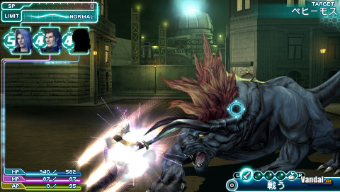 La primera de las opciones es el ataque básico con espada, equivalente al comando atacar, que no necesita pasar por ningún tiempo de espera entre un golpe y otro salvando un pequeño instante que separa a Crisis Core de juegos más enfocados a la acción. No existen combos debidos a la velocidad, pero sí es posible golpear a varios enemigos simultáneamente. El botón X es un atajo directo al comando atacar. Por supuesto, necesitaremos de la magia (tanto de cura como ofensivas) identificados como materias que consumen una serie de puntos, y objetos en nuestro haber. También se contempla la posibilidad de cubrirse de ataques y de evadirse con un movimiento rápido, acción que incuso es útil ante ataques mágicos enemigos.