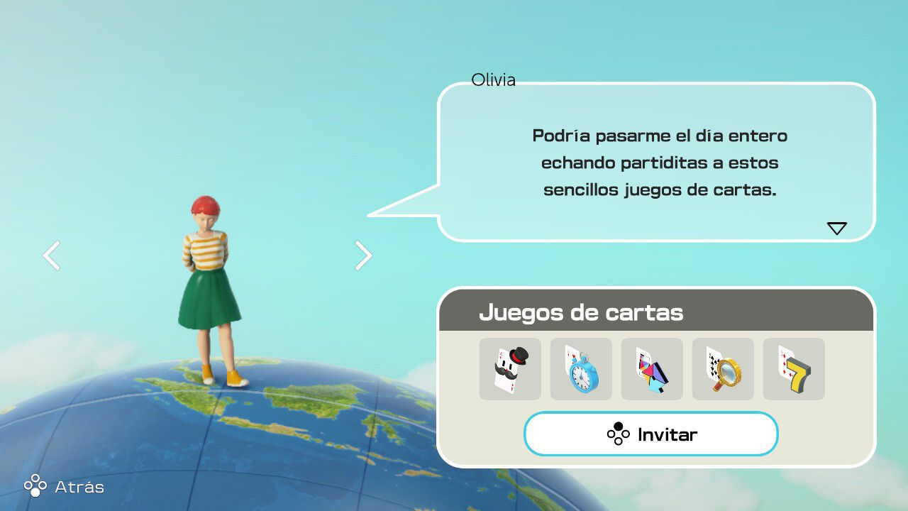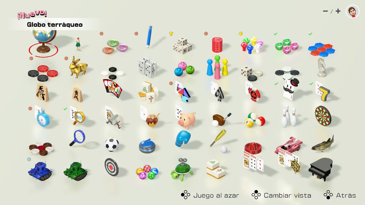 El avatar en realidad se utiliza solo para saber de dónde es el jugador y conocer los detalles de la evolución de la partida mientras el globo terráqueo se va poblando de esos otros personajes "expertos" en un tipo de juegos. Así, en Japón hay uno que muestra juegos clásicos de Nintendo, el de Australia enseña juegos para llevar o en Francia está el experto en juegos con control táctil. Pero esta opción se utiliza únicamente en el modo para un jugador; cuando ya hay dos aparecen todos los juegos disponibles en línea o, de forma más visual, como un mosaico.