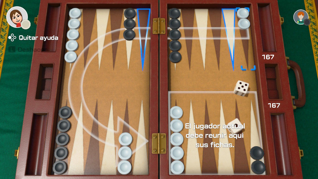 El modo para un jugador parece indicado únicamente para desbloquear nuevas barajas y expertos y para aprender las normas de cada juego (tal vez es hora de aprender definitivamente cómo se juega al backgammon, las damas chinas o al molino). La inteligencia artificial se percibe natural en los juegos de cartas, pero hay otros en los que no transmite estas buenas sensaciones y sí logra hacer sentir al jugador que está jugando en desventaja o que gana porque la máquina se lo ha puesto demasiado fácil. Jugando contra otra persona, ya sea en la misma consola u online (no hemos podido probar con más consolas en modo local) es tan divertido como lo sería una partida con tableros físicos.