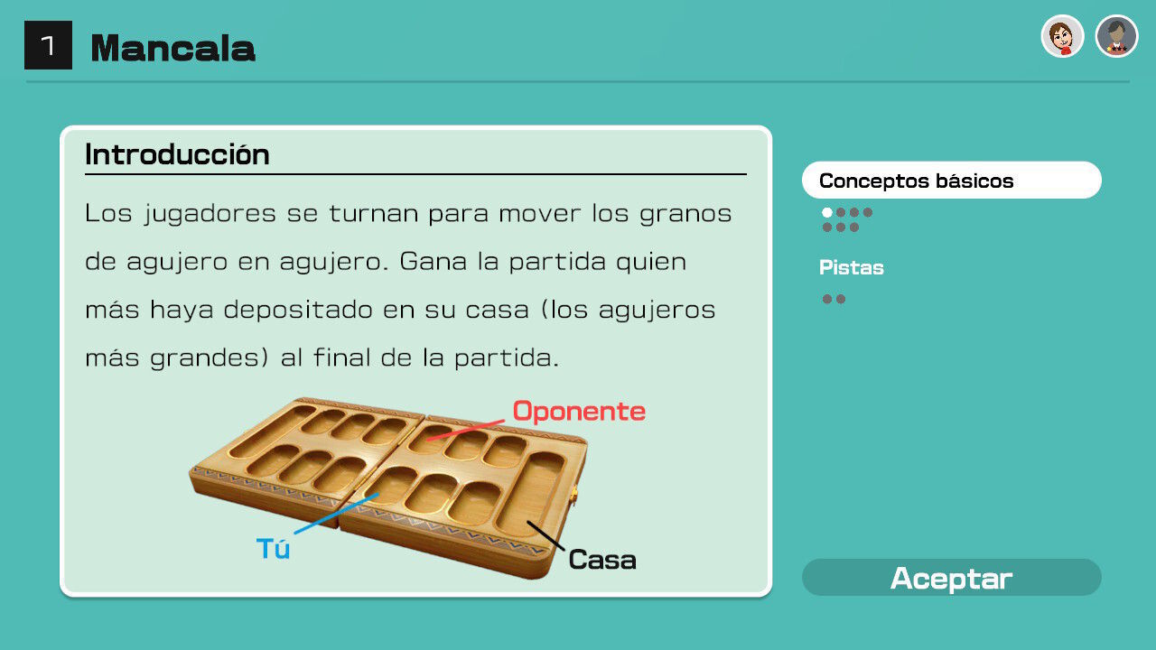 Cada juego incluye un vídeo inicial en algo parecido a un tutorial en el que dos personajes muestran algunas mecánicas básicas y las condiciones de victoria, y luego se pueden repasar esas normas básicas. El vídeo es ameno en la mayoría de los juegos que hemos probado aunque en ocasiones sirve más para transmitir las sensaciones del juego que para aprender sus normas. Las instrucciones que se pueden consultar después son más clarificadoras y están bien explicadas e incluso incluyen algunos consejos para conseguir la victoria. La mayoría de los juegos que hemos probado incluye distintas opciones que afectan a la duración de la partida, la dificultad de la inteligencia artificial o el número de rondas.