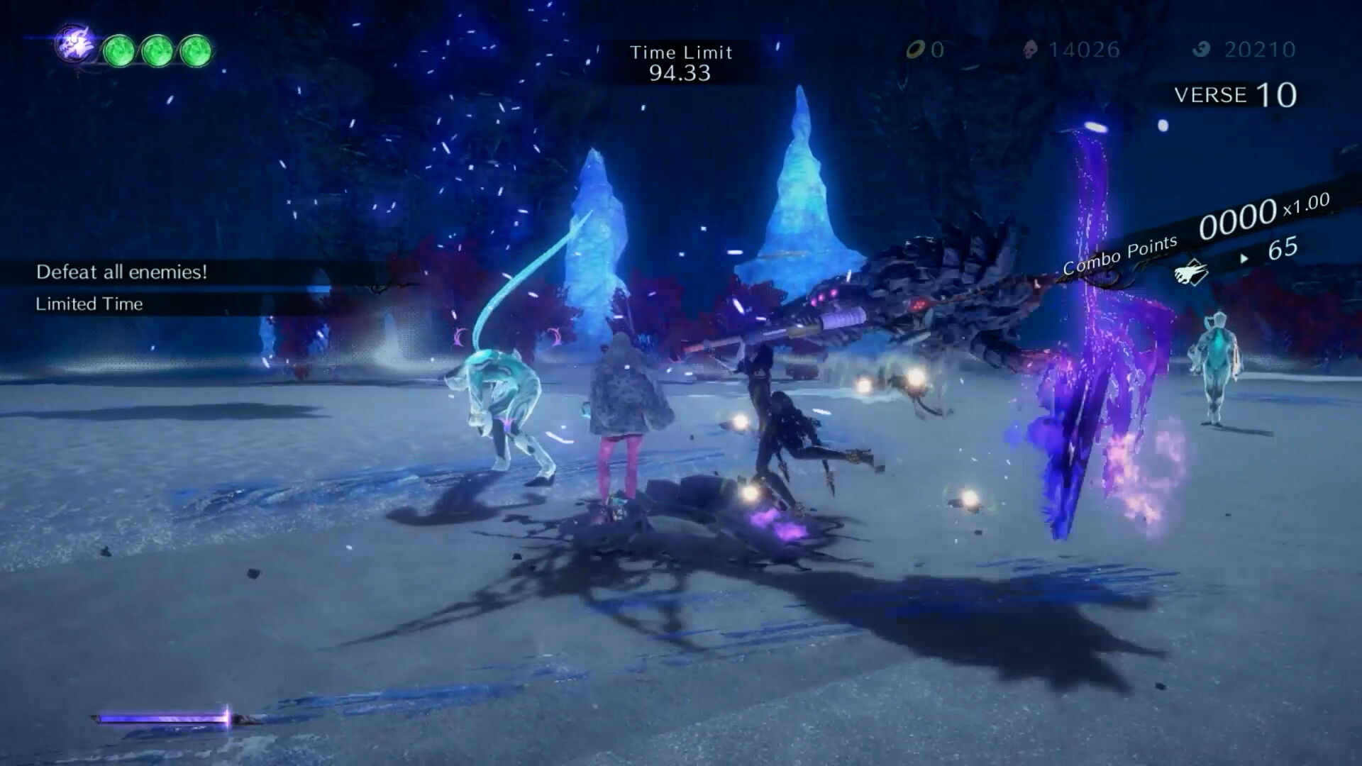 Las medallas de platino y de oro de nuestra sesión de juego con Bayonetta se convirtieron en platas, bronces y hasta alguna que otra piedra al jugar con Viola. Y no solo porque seamos mancos, sino porque jugar con esta aspirante a Bruja de Umbra es muy distinto a hacerlo con la protagonista. Se nota al desplazarse por los niveles, pues usa un gancho para llegar a sitios inaccesibles con el doble salto; pero se nota, sobre todo, en el combate, en su ritmo, en los enemigos que priorizamos, y sobre todo, en algo tan clave como la esquiva y el Tiempo Brujo.