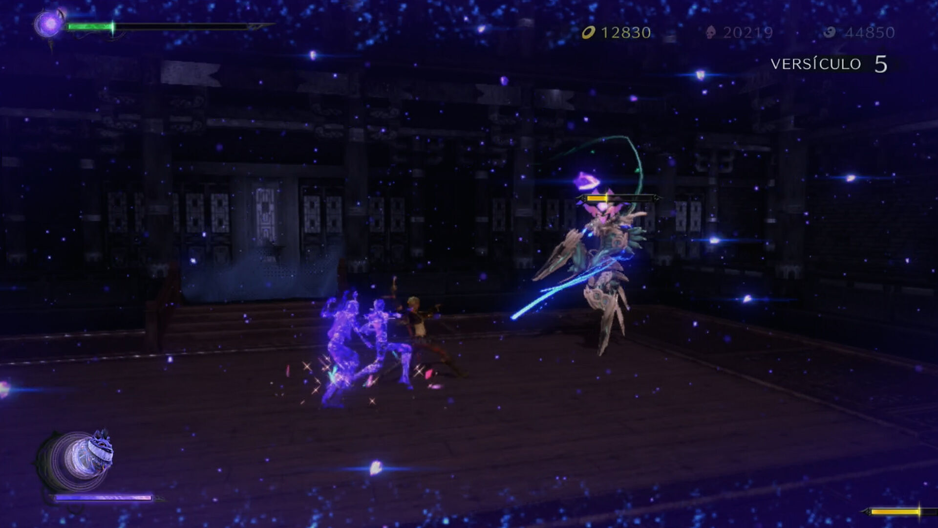 Al menos, hasta que nos cambió el chip y nos dimos cuenta de que con Viola se juega de otra manera. No hay que estar constantemente buscando el Tiempo Brujo, sino que en la mayoría de las ocasiones lo mejor es esquivar en lugar de utilizar un bloqueo que es direccional y que, por tanto, nos deja vendidos si nos golpean por los lados o por la espalda. Y por supuesto, hay que tener en cuenta a Cheshire. Viola no puede controlar directamente a los demonios, pero va acompañada de un gato morado gigantesco cuya invocación entra en los combos y que permite realizar ataques poderosos cuando lo activamos justo cuando el personaje brilla mientras damos espadazos.
