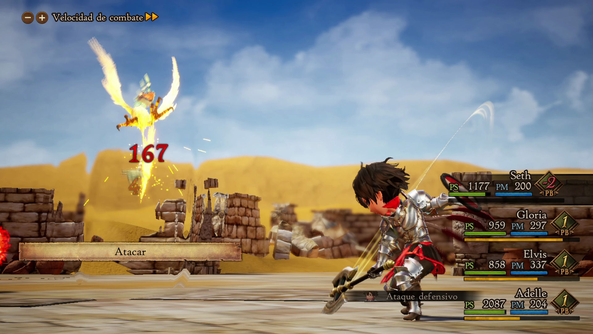 Si bien en los combates contra enemigos estándar esto no se aprecia demasiado (la mayoría los estamos resolviendo abusando de Brave y el comando de Atacar), la cosa cambia muchísimo a la hora de hacer frente a sus numerosos y desafiantes jefes, los momentos cumbre de la aventura. No queremos entrar demasiado en detalle, pero todos contra los que hemos luchado han resultado en unos combates variadísimos y con mecánicas únicas que nos han obligado a pensar bastante, a adaptar nuestras estrategias y a escoger con sumo cuidado cada una de nuestras acciones en unas batallas largas, intensas y para nada fáciles.