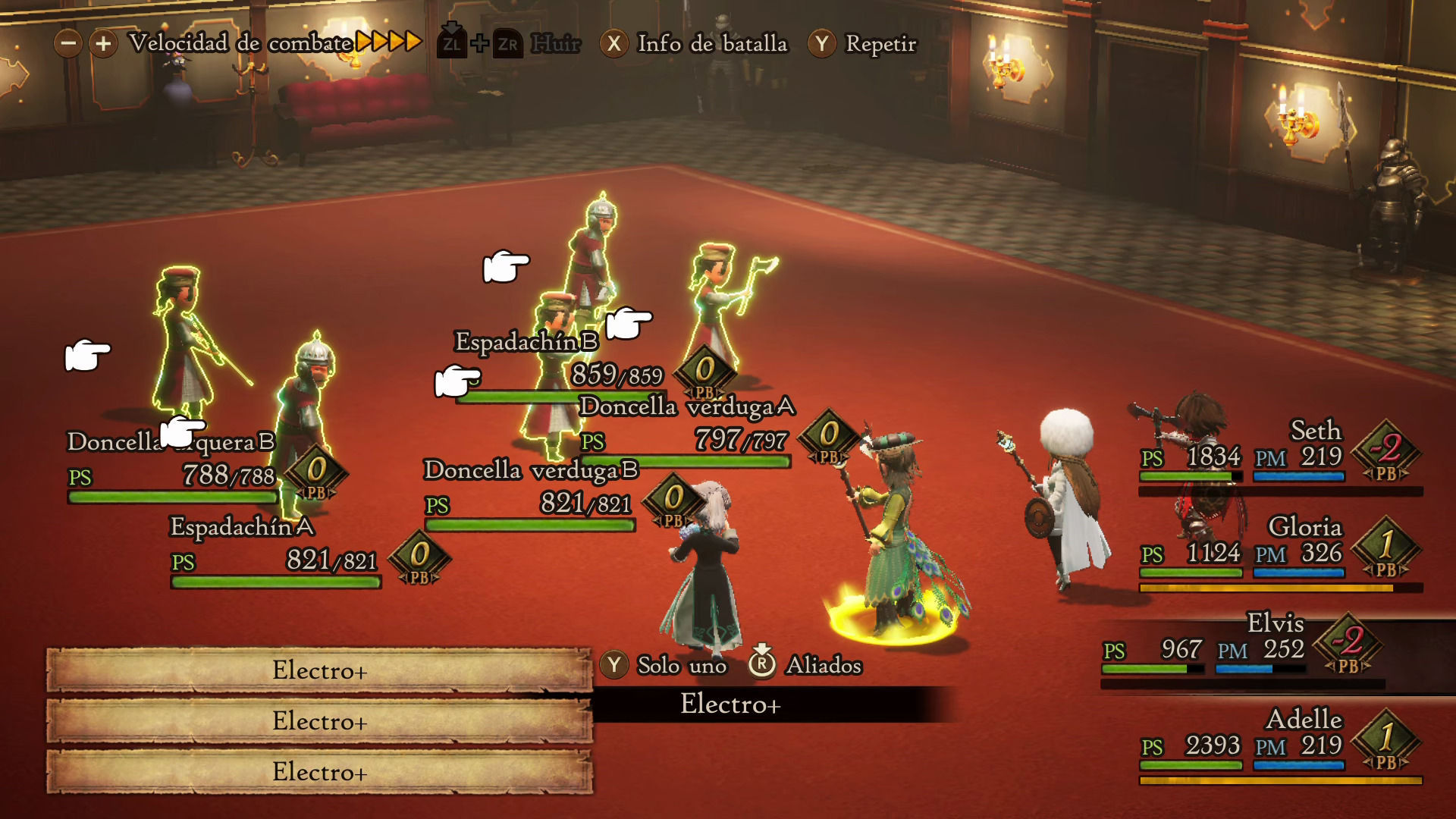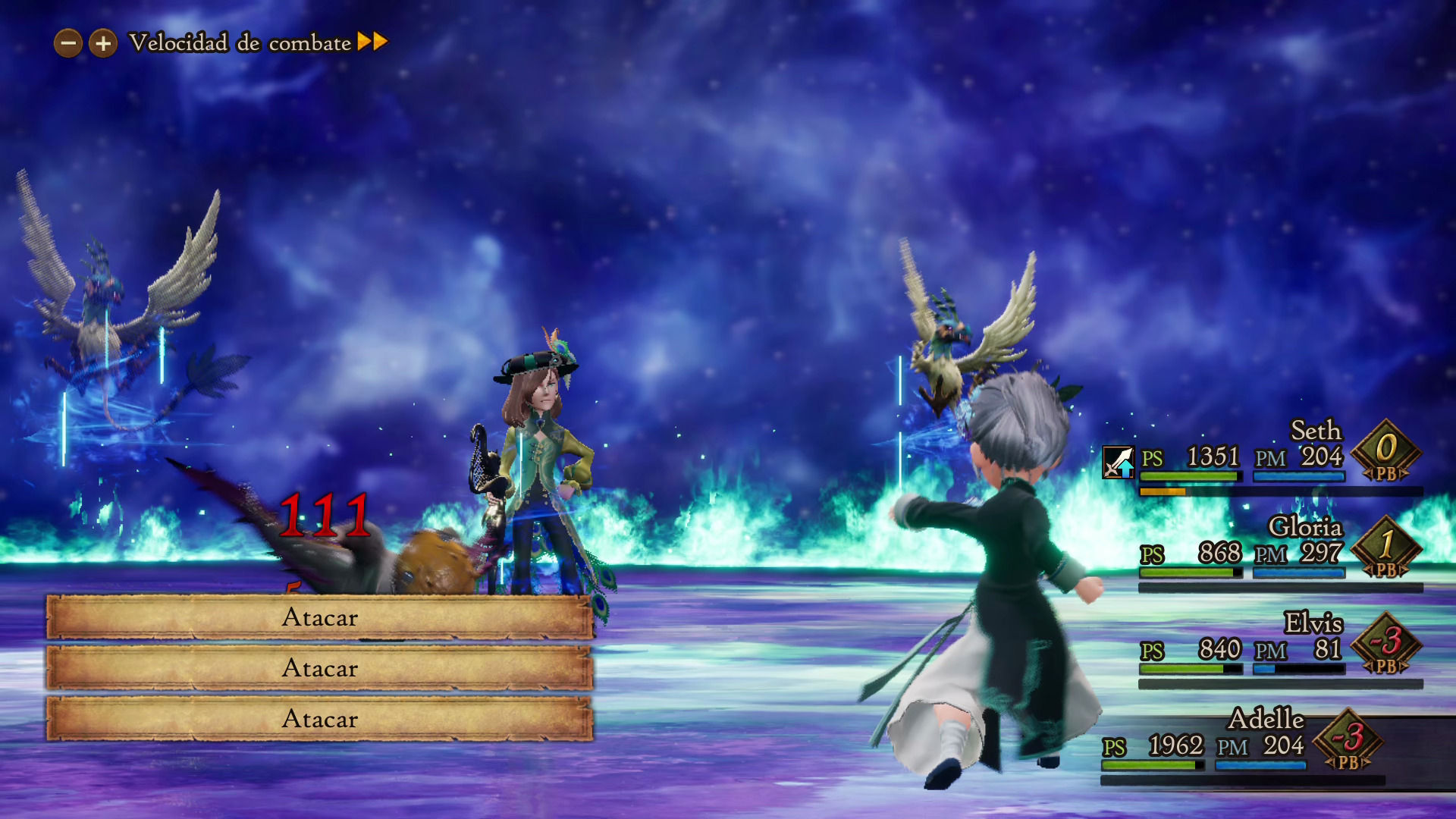 Esta novedad podría parecer algo menor, pero os aseguramos que cambia por completo la forma en la que gestionamos nuestras estrategias, obligándonos a escoger con mucho más cuidado cuándo queremos hacer uso de los comandos Brave y Default. Con Brave podemos actuar hasta cuatro veces en un mismo turno mientras que con Default adoptaremos una pose defensiva y acumularemos un punto de acción que podremos invertir al hacer Brave para así no quedarnos en negativo. Si ocurre esto último, nuestro personaje tendrá que esperar el número de turnos que se indique sin poder hacer nada hasta que "pague" las acciones extra que ha utilizado al hacer Brave. El funcionamiento de este sistema en la práctica es espectacular, ofreciéndonos montones de posibilidades para desarrollar nuestras tácticas y manipular el orden de los propios turnos como queramos, aunque siempre siguiendo unas reglas muy claras y justas.