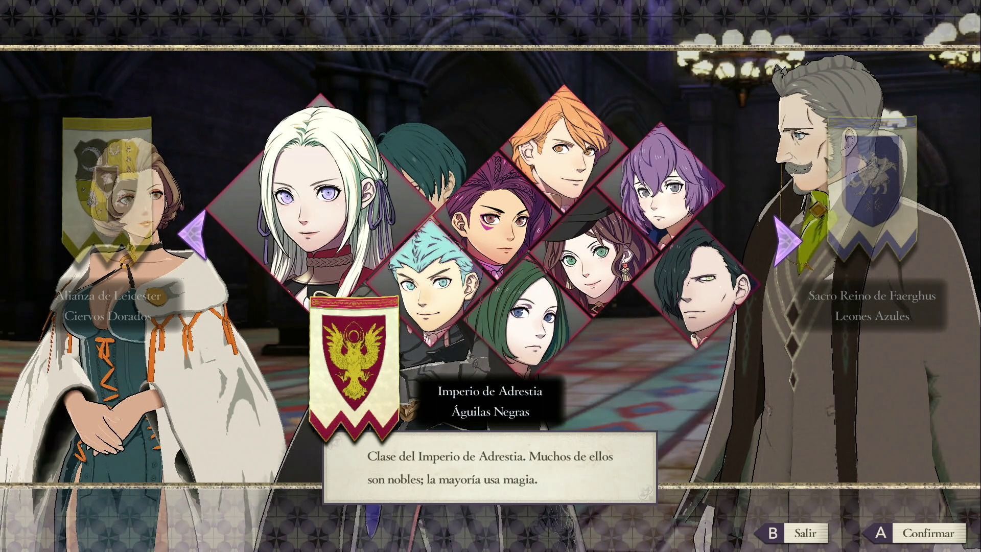 Al poco de empezar a jugar nos explicarán que esta escuela se divide en tres grandes casas, cada una de ellas correspondiente con las potencias principales de Fódlan, y nos tocará escoger una.