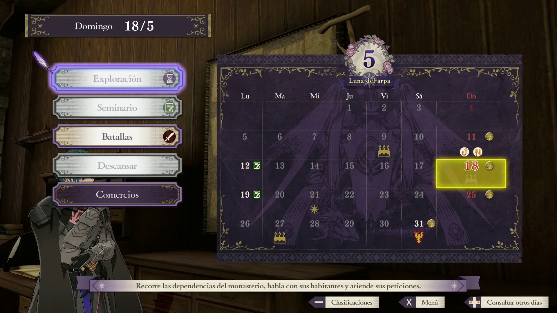 Para ello, seguiremos un calendario escolar al más puro estilo Persona, aunque no jugaremos todos los días. En vez de eso, los días libres que tengamos (lo que suele caer en domingo) podremos invertirlos en explorar la academia, realizar alguna batalla opcional para conseguir experiencia extra, descansar para mejorar la motivación de nuestros alumnos o participar en algún seminario que nos permita potenciar ciertas disciplinas de los estudiantes que estén interesados en ellas.