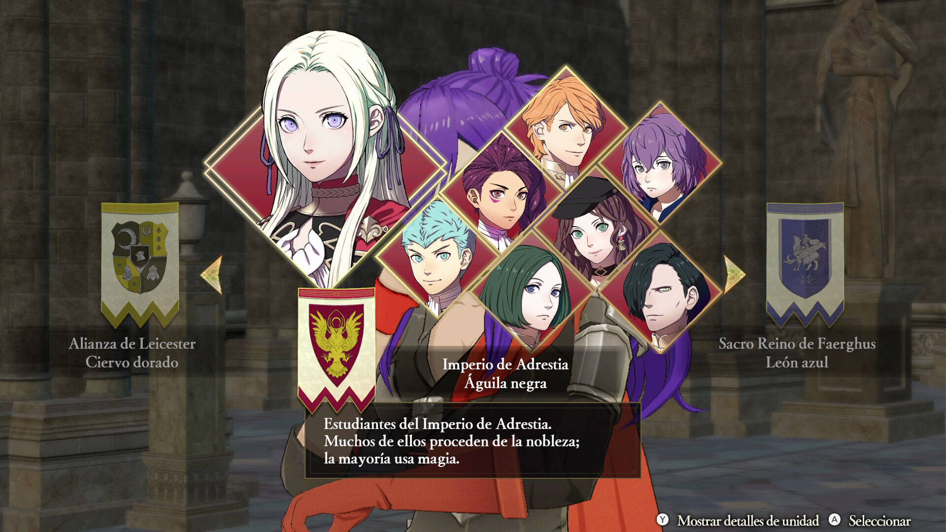Como dijimos antes, aquí viviremos unos eventos alternativos a los que tuvieron lugar en Three Houses. De hecho, tendremos a un nuevo y misterioso protagonista que ve a Byleth como su principal enemigo (o enemiga, pues podemos seleccionar su sexo) y por supuesto, al poco de empezar a jugar nos harán escoger entre las tres casas que todos conocemos: Águila Negra, León Azul o Ciervo Dorado, y dependiendo de nuestra elección cambiarán los personajes iniciales que podremos controlar y la ruta argumental que seguiremos, aunque esto último es algo que todavía no hemos podido explorar a fondo.