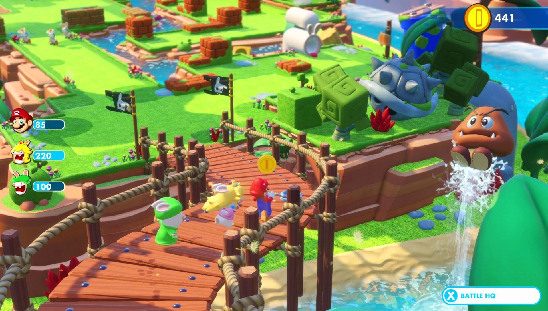 Mario + Rabbids Kingdom Battle es un juego de estrategia con un toque de aventura y exploración, aderezado también con algunos puzles y minijuegos. Su núcleo jugable nos propone recorrer diferentes escenarios (por ahora, todos los que hemos visto están inspirados por el universo de Mario) combatiendo regularmente contra los Rabbids en diferentes tipos de batallas.
