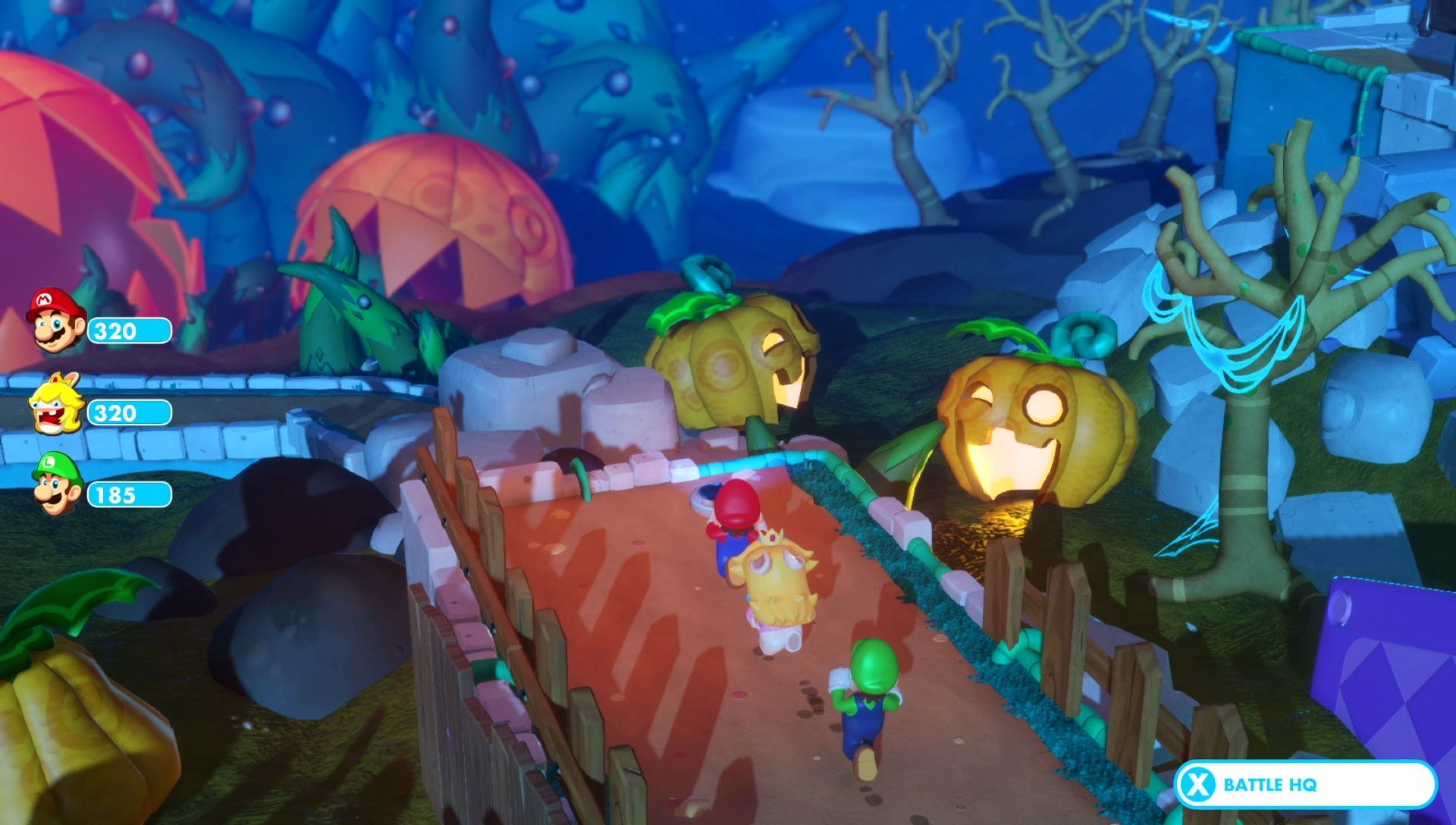 Por poner un ejemplo, uno de los niveles que probamos, Spooky Trail, nos invitaba a cruzar un escenario repleto de enemigos y Boos, los fantasmas de Super Mario. Los enemigos reaparecerían constantemente, por lo que no tenía sentido intentar matarlos a todos, y los Boos nos devolverían al inicio de nivel si nos capturaban. Tras descubrir que los fantasmas cambiaban de ubicación en cada turno, decidimos intentar encontrar el camino más directo, defendiéndonos de los ataques enemigos mientras esperábamos a que acabase el turno para que los Boos se fueran a otra parte.