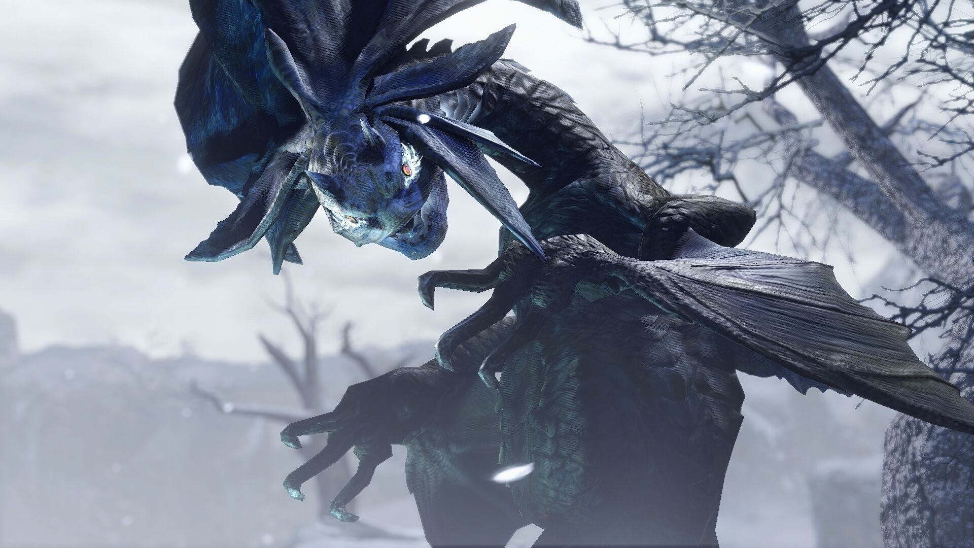 Otra de las nuevas bestias que hemos podido ver en acción es Lunagaron, un wyvern de colmillos con aspecto de lobo inspirado en los licántropos. Además de poder cubrir su piel con hielo (lo que le da una apariencia más amenazadora), cuando se enfada cambia por completo su manera de atacar, irguiéndose sobre sus cuartos traseros y adoptando una figura vagamente humanoide mientras nos atosiga con sus letales garras. Por lo que hemos visto, su agilidad y el rango de sus ataques prometen hacer de esta una batalla muy intensa y memorable.