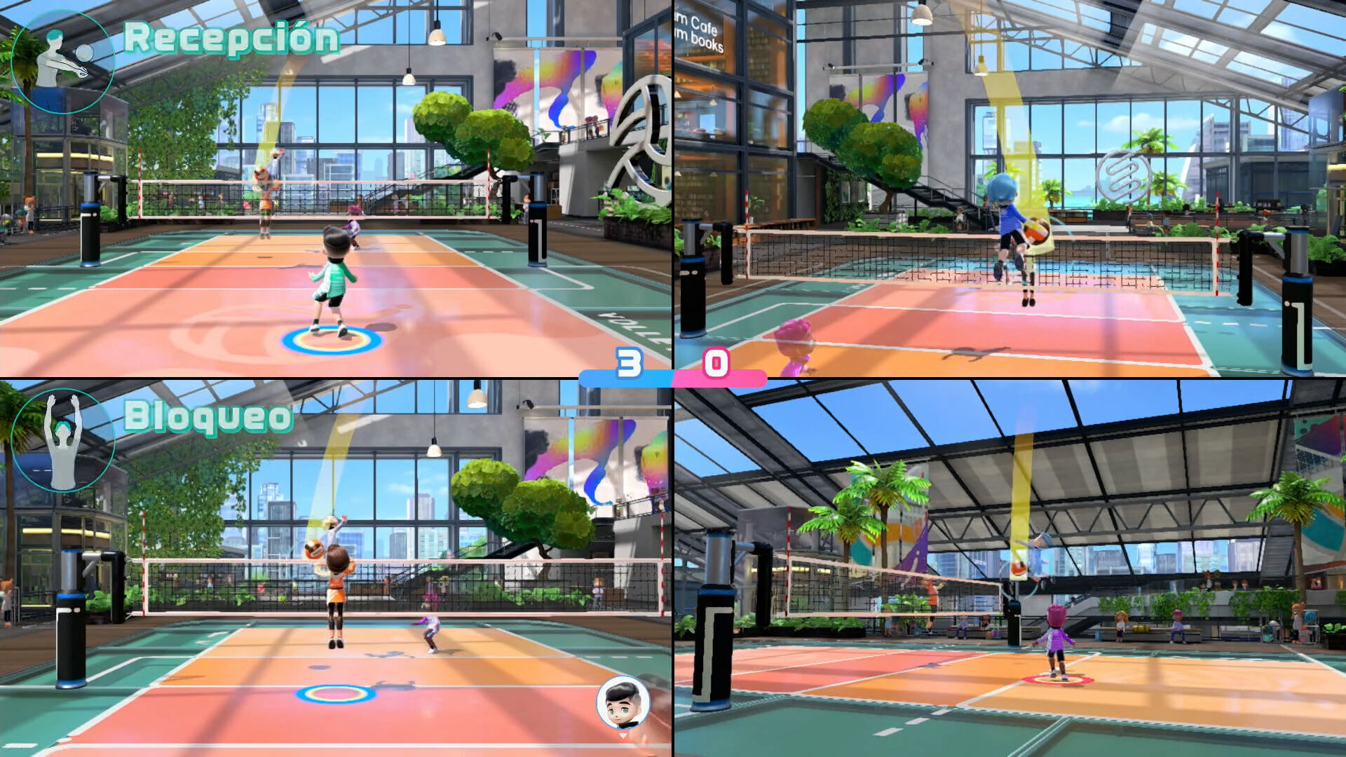 El voleibol se convertirá en el deporte favorito de muchos en situaciones concretas. Se juega con un Joy-Con por jugador (hasta cuatro) que sirve para todo: sacar, recibir, colocar, rematar y saltar. Aunque en los mates sí se tiene en cuenta la dirección en la que movemos el mando, aquí lo importante no es ni el efecto que le demos a la pelota ni la velocidad con la que movamos el mando, sino el timing, el hacerlo en el momento justo. Algo imprescindible para evitar que saltemos frente a la red antes de tiempo, para interceptar los mates rivales, y por supuesto, para recibir. Sin embargo, su virtud es también su mayor problema. Los partidos siempre son de dos contra dos. Jugando en multijugador local a cuatro se crean situaciones dinámicas donde la comunicación entre los participantes es constante, pero en solitario se puede percibir lento y hasta aburrido ya que la mitad de las acciones las hace la IA (se va alternando entre quién saca, quién recibe, etc.). Una IA, por cierto, que en todos los deportes se puede ajustar con tres niveles de dificultad.