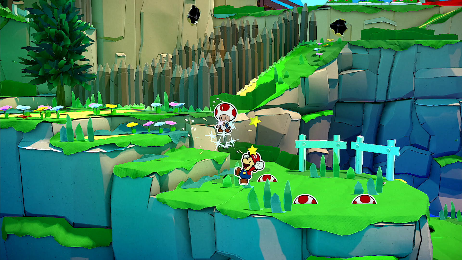 A que la exploración sea tan divertida también ayuda la búsqueda de los múltiples Toad que hay escondidos por todos los escenarios, algunos convertidos en figuras de origami y otros simplemente arrugados como bolas de papel, y os podemos asegurar que están muy bien ocultos. Algunos están más a la vista que otros, pero dar con ellos es algo que resulta enormemente entretenido, invitándonos a que interactuemos con todo lo que nos pueda resultar sospechoso y a que prestemos mucha atención a nuestro entorno, pues están por todas partes.