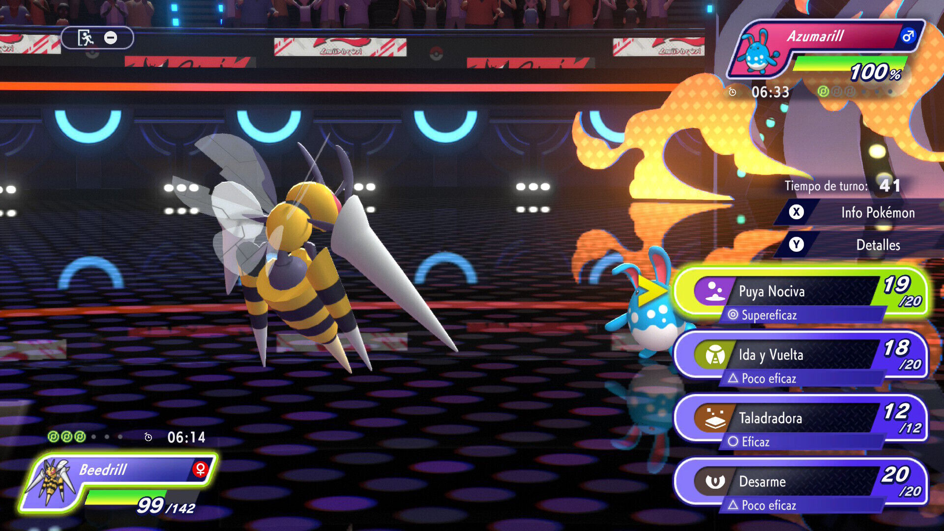 Ese es el objetivo, subir de liga en los combates competitivos, que son tan divertidos como llevan siéndolo varias décadas. Son enfrentamientos por turnos en los que cada nueva criatura, movimiento o habilidad da pie a estrategias inéditas. La emoción comienza antes del combate, cuando tienes que elegir a cuatro Pokémon de tu equipo (o tres en el caso de los combates individuales) analizando el equipo completo del rival, tratando de adivinar cuáles escogerá el contrario, un proceso en el que te sientes como Charlie Day en el famoso meme de Colgados en Filadelfia.