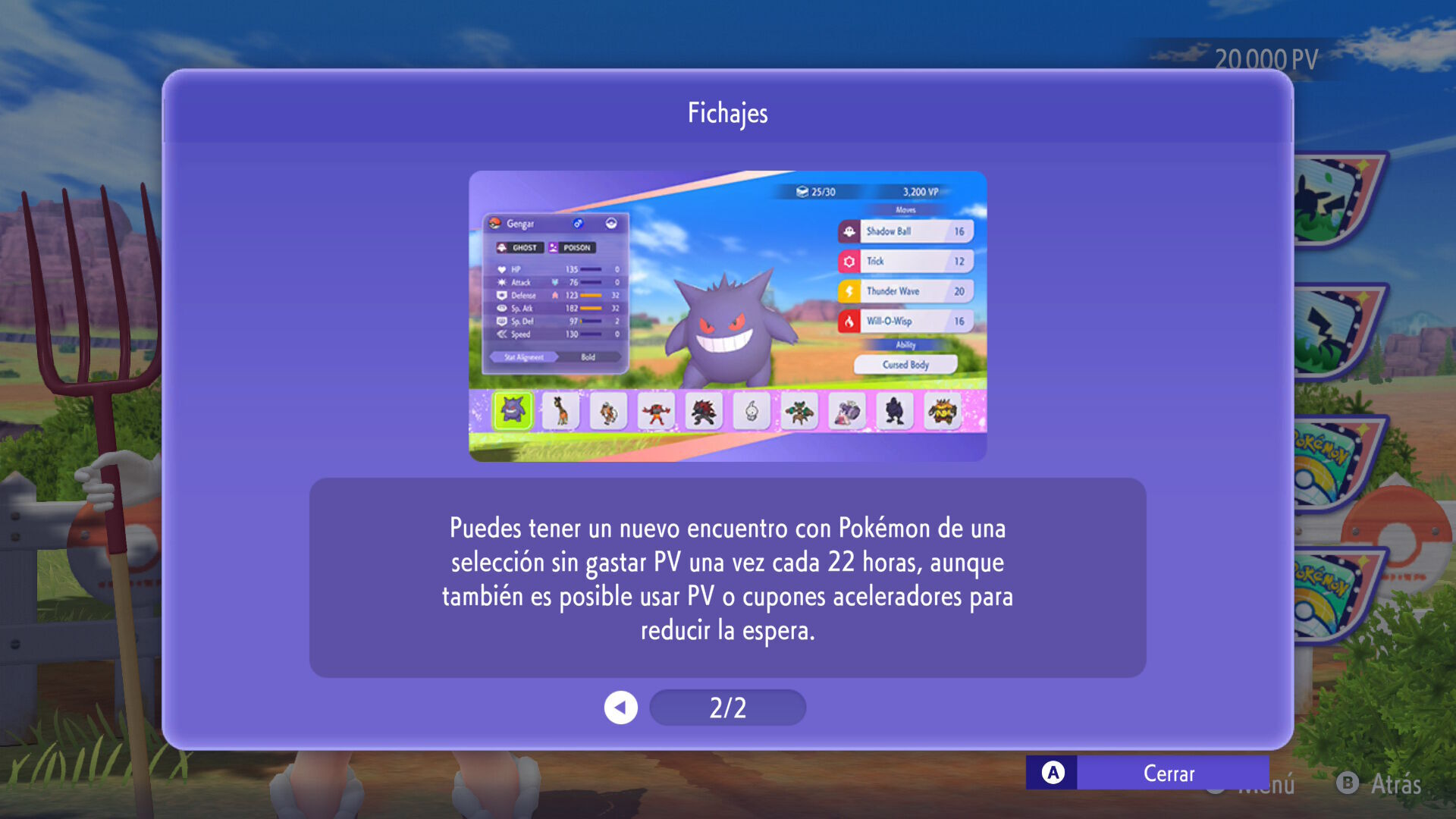 Una vez escogido un Pokémon de la selección, puedes alquilarlo gratis durante una semana o añadirlo permanentemente a tu caja con PV o con cupones de fichaje, otra moneda que se obtiene en el pase de combate de temporada, tanto en el gratuito cómo en el prémium (9,99 € por temporada) Estas recompensas también se pueden conseguir con las misiones semanales y diarias, aunque tampoco nos gusta la idea de que un juego te ponga una zanahoria para que entres todos los días, a pesar de que sea una práctica asentada en los juegos gratuitos y, cada vez más, también en los de pago.