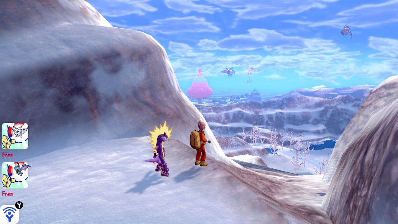 Las tres misiones tienen el objetivo común de hacernos recorrer y conocer el nuevo entorno. Como en la anterior, esta ampliación propone un mundo abierto sin rutas. Aunque la ambientación sea menos variada que en La isla de la armadura, Las nieves de la corona propone un Área Silvestre aún más grande repleta de nieve, planicies, ríos, cuevas y costas gélidas, y muy bien diseñada a nivel visual. No nos referimos solo a que haya zonas que puedan ser muy bonitas (dentro de las limitaciones del motor gráfico), sino a un diseño visual inteligente: puntos de referencia visibles desde distintas partes del entorno para orientarse, claros en medio de zonas de hierba frondosa que orientan al jugador hacia un secreto, y caminos que siempre llevan a alguna recompensa: una DT, un objeto útil o Pokémon poderosos como Metagross y Aurorus.