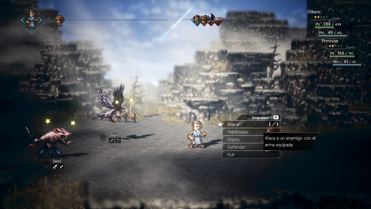En el caso concreto de esta demostración solo hemos podido probar la primera hora de juego de dos personajes, el guerrero Olberic y la bailarina Primrose, lo que nos ha permitido descubrir los motivos por los que se embarcarán en esta gran aventura.