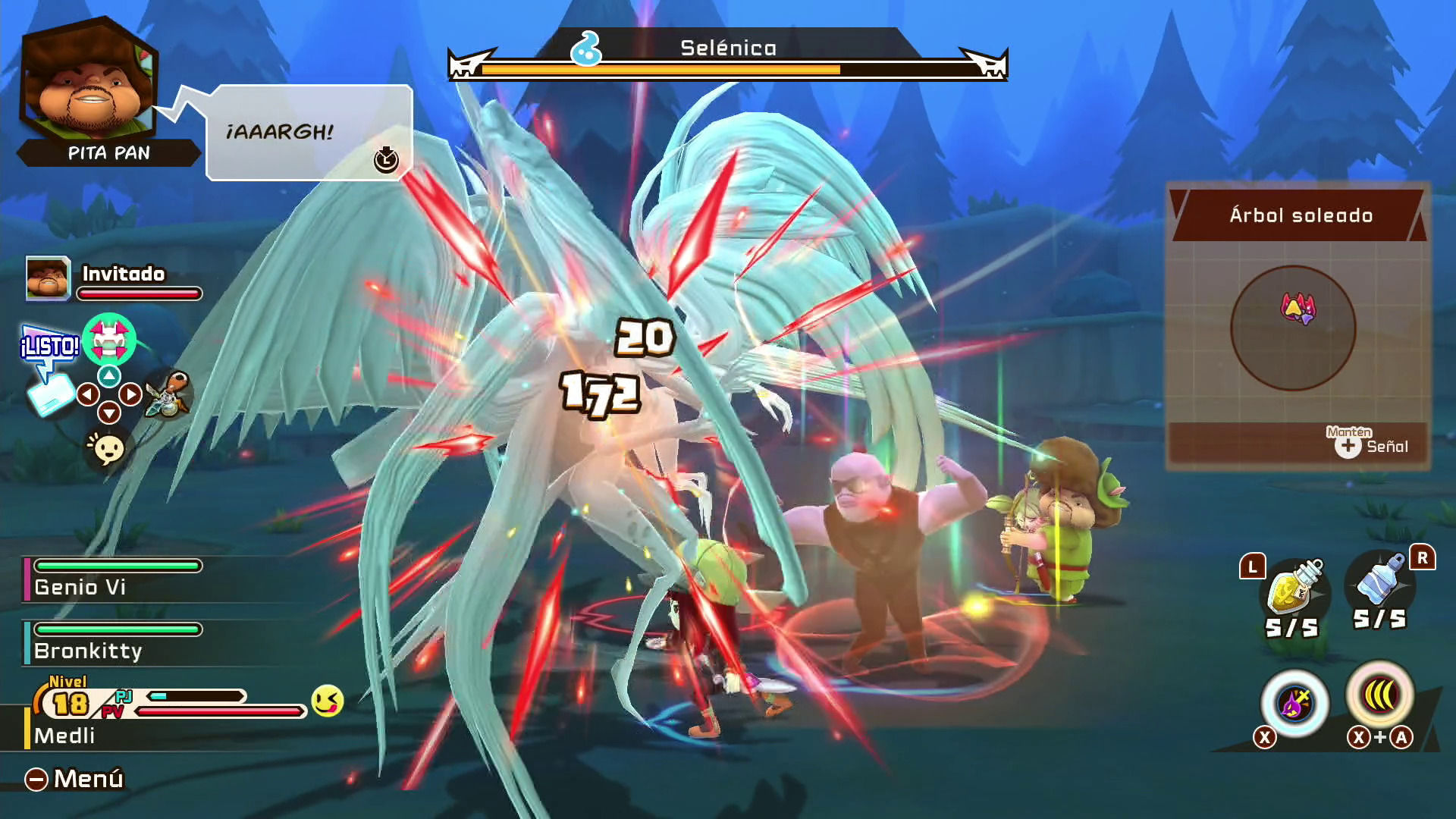 Sobre los snacks, son criaturas y personajes que podemos invocar al campo de batalla para que formen parte de nuestro grupo principal, aunque también podemos tener algunos en la reserva para llamarlos y controlarlos temporalmente, algo a lo que, de momento, no le hemos dado casi ningún uso, ya que no lo hemos necesitado.