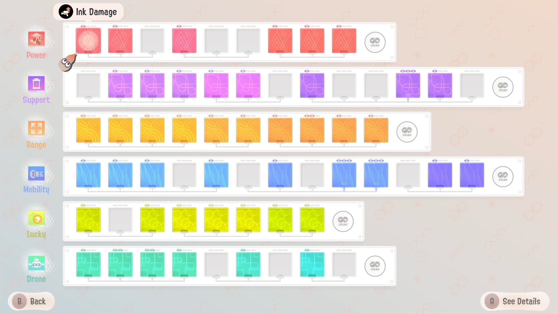 La cara del orden es un roguelite: conseguimos mejoras que desaparecen tras la partida y otras que son permanentes. Al superar cada planta conseguimos un cromochip que colocar en la paleta, en la que caben un buen puñado. Los cromochips son de distintos colores o tipo, y en cada uno hay varios diferentes: los hay que aumentan el alcance de los disparos o la potencia de los mismos, que incrementan cuánto ralentiza la tinta a los rivales, que mejoran las probabilidades de obtener potenciadores u objetos de ayuda…