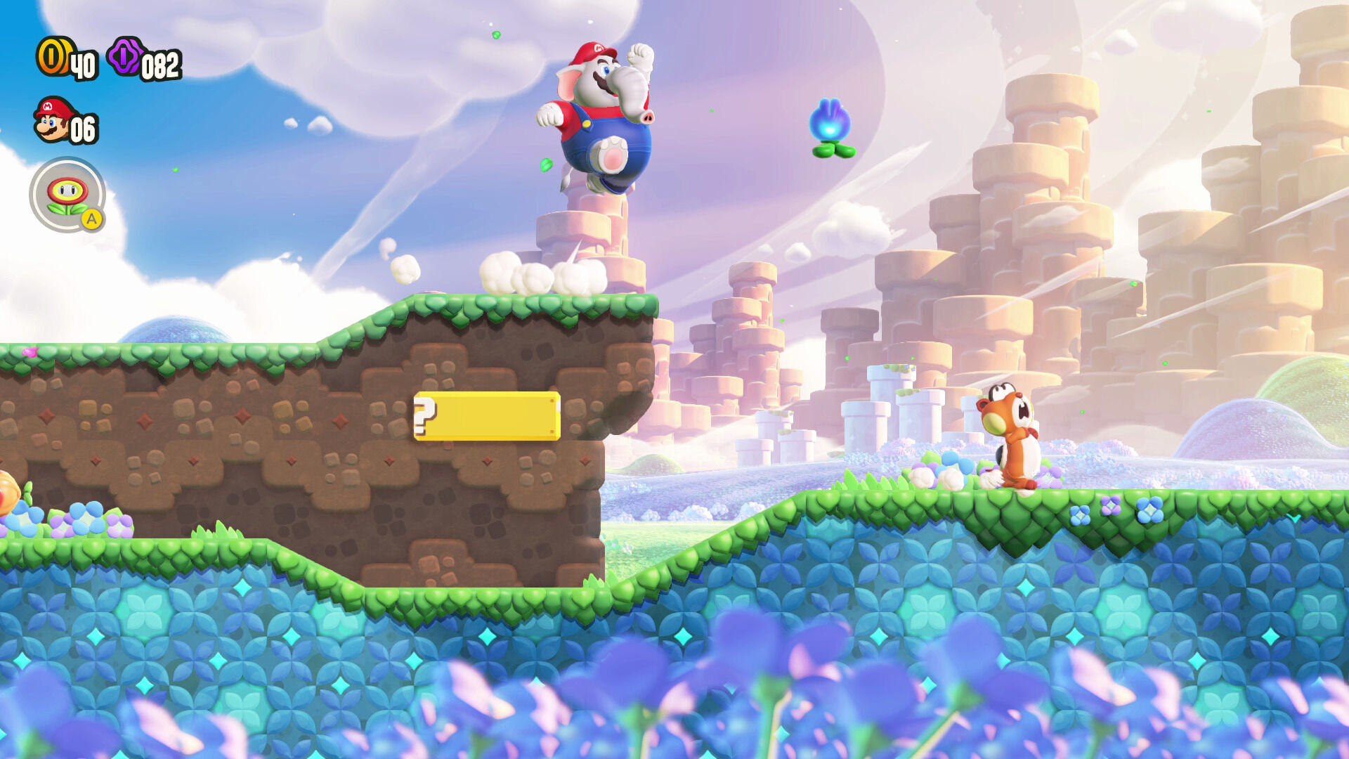 La banda sonora también nos está gustando y si bien no hemos escuchado ningún tema que pueda competir con las melodías clásicas de la saga o lo escuchado en las entregas 3D, resulta tan animada y vivaz que consigue convertir cada fase en una auténtica fiesta. Además, se comporta de forma dinámica y cuenta con detallitos geniales, como que cambie la instrumentación al transformarnos en elefante. Por su parte, los efectos también son fantásticos y el doblaje nos llega en español para las flores parlantes que hay repartidas por todas las fases, las cuales nos dan pistas y hacen comentarios que, en algunas ocasiones, nos han parecido muy graciosos.