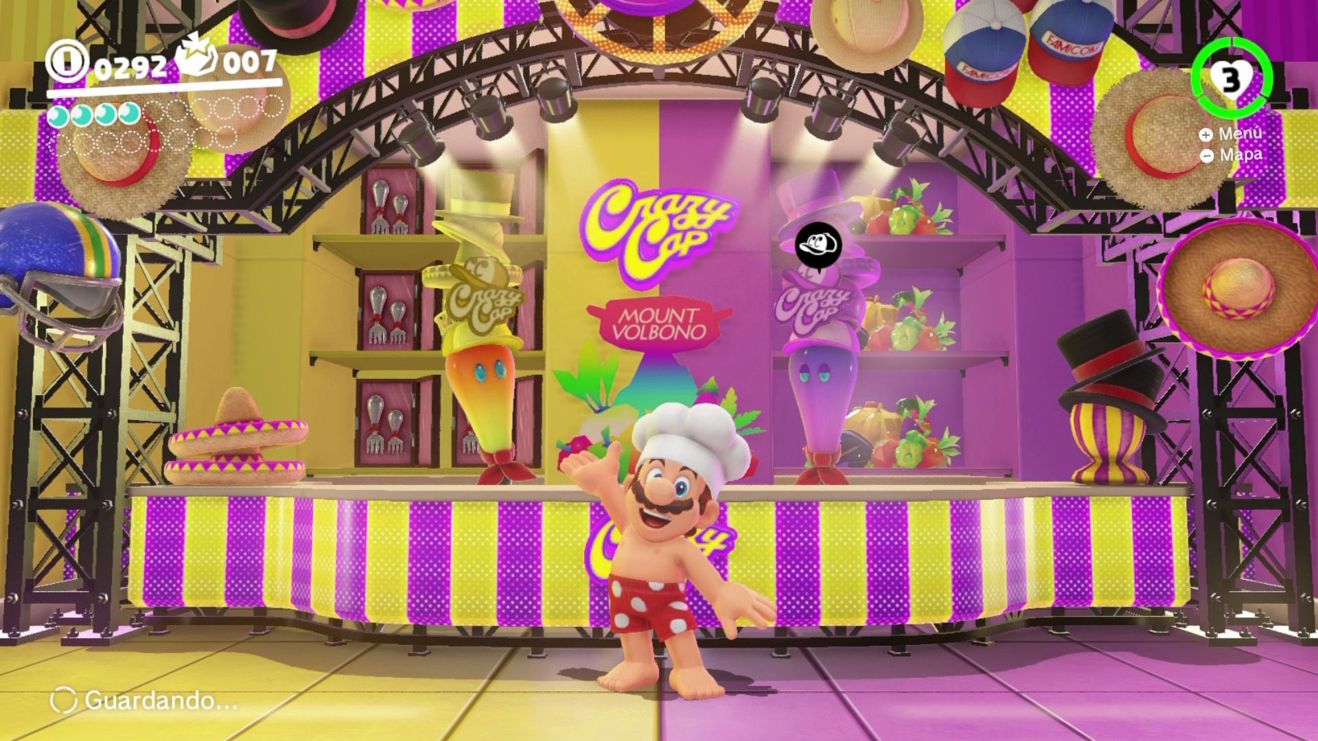 En este nuevo contacto pudimos explorar en profundidad dos de ellos, Reino de los fogones y Reino ribereño, y así disfrutar del derroche de creatividad y buenas ideas que ofrece este juego, que no te deja de sorprender un solo momento. A los habituales movimientos de Mario en sus entregas en 3D, muy numerosos y variados a estas alturas, se le suman todo un nuevo surtido de acciones gracias a Cappy, un misterioso personaje que se ha convertido en la icónica gorra roja de Mario, y que nos permite tantos movimientos que llegamos a sentirnos desbordados en los primeros minutos.