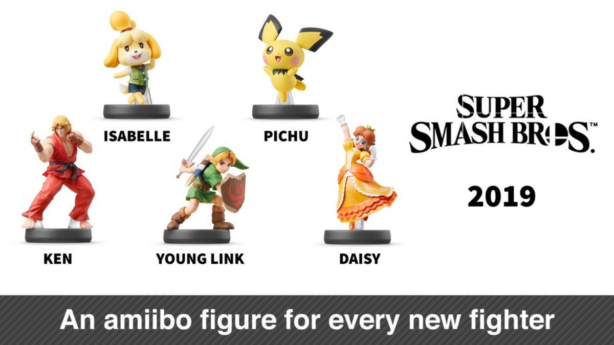 Tal y como era también de esperar, cada nuevo luchador de esta entrega o veterano que no apareciera en la entrega de Wii U y 3DS recibirá su correspondiente figura amiibo, las cuales irán llegando de forma progresiva a lo largo de los próximos meses.