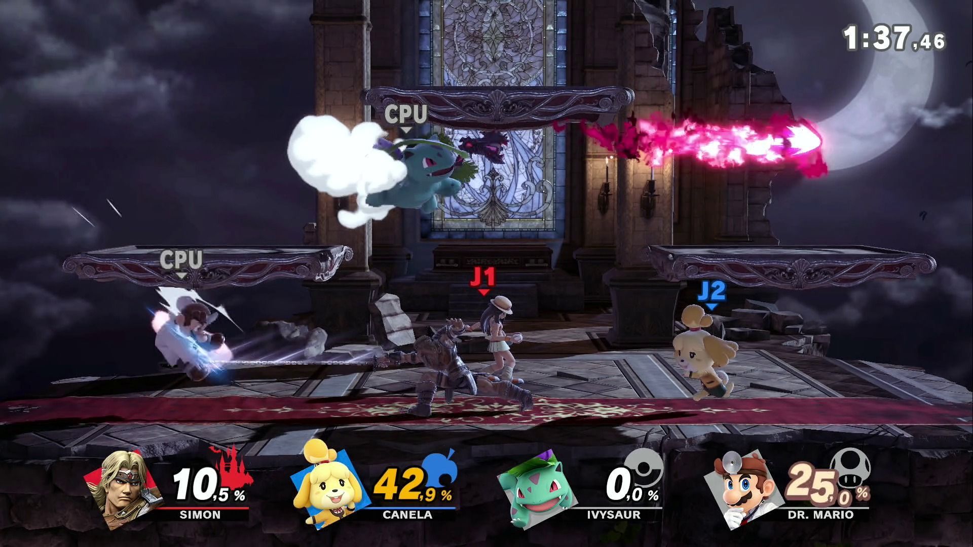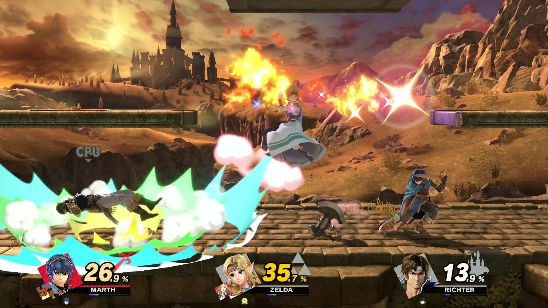 Por otro lado, Simon y Richter Belmont son todo un homenaje y una carta de amor para cualquier fan de la saga Castlevania. Sus ataques con el látigo, sus diferentes armas secundarias a modo de ataques especiales e incluso pequeños detalles como el hecho de poder hacer malabares con el Vampire Killer manteniendo pulsado el botón A mientras movemos el stick (es decir, exactamente igual que en Super Castlevania IV) les dan una autenticidad gigantesca. Se mueven exactamente igual que en sus juegos y las animaciones se han reproducido con gran fidelidad para alegría de todos.