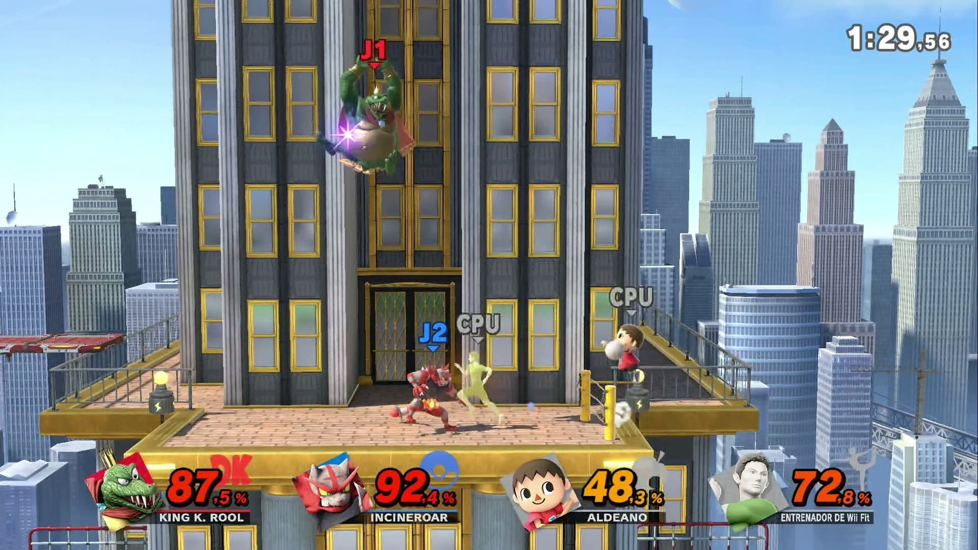 Por su parte, King K. Rool, el icónico villano de Donkey Kong Country, es un guerrero lento como él solo que se guarda algunos ases bajo la manga, como la posibilidad de disparar balas de cañón con su trabuco, lanzar su corona para interceptar todos los proyectiles e incluso atrapar objetos al vuelo o realizar contraataques a barrigazo limpio. Nos ha gustado mucho que todos sus ataques estén basados en los movimientos que realizaba en sus juegos cuando lo combatíamos, aunque es tan extremadamente lento que no hemos terminado de hacernos bien a su estilo de juego.