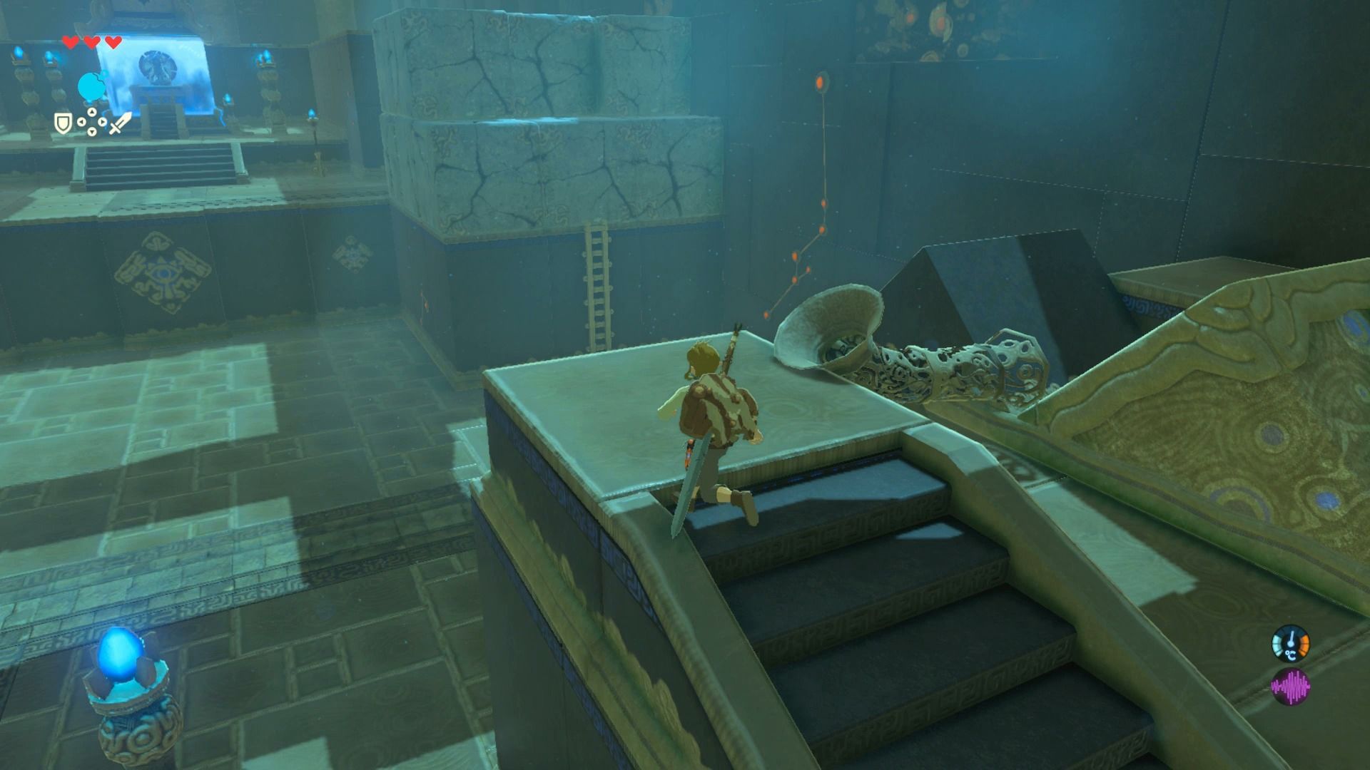 Para ello deberemos conseguir las mejores armas y equipo, y sobre todo y muy importante, ampliar el indicador de resistencia y la salud, la cantidad de corazones. La manera de conseguir esto es superando los santuarios, más de 100 pequeños templos que esconden uno o varios puzles, que tenemos que superar utilizando intensivamente la piedra sheikah. Este es un artefacto en el que vamos desbloqueando distintos poderes, como manipular objetos metálicos, congelar temporalmente objetos o lanzar bombas, y que son acciones que casi siempre están relacionadas con las elaboradas físicas del juego.
